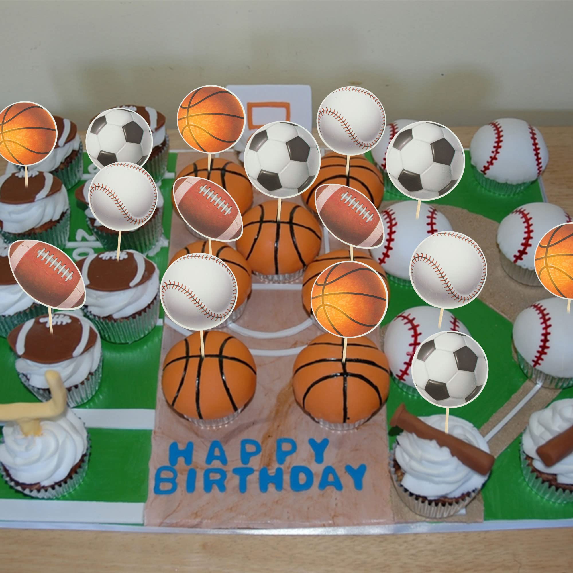 ⚾Package included: 36Pcs Sports Ball Cupcake Toppers. Comes with assembled, so you can insert into your cake directly, which make your cake more interesting.