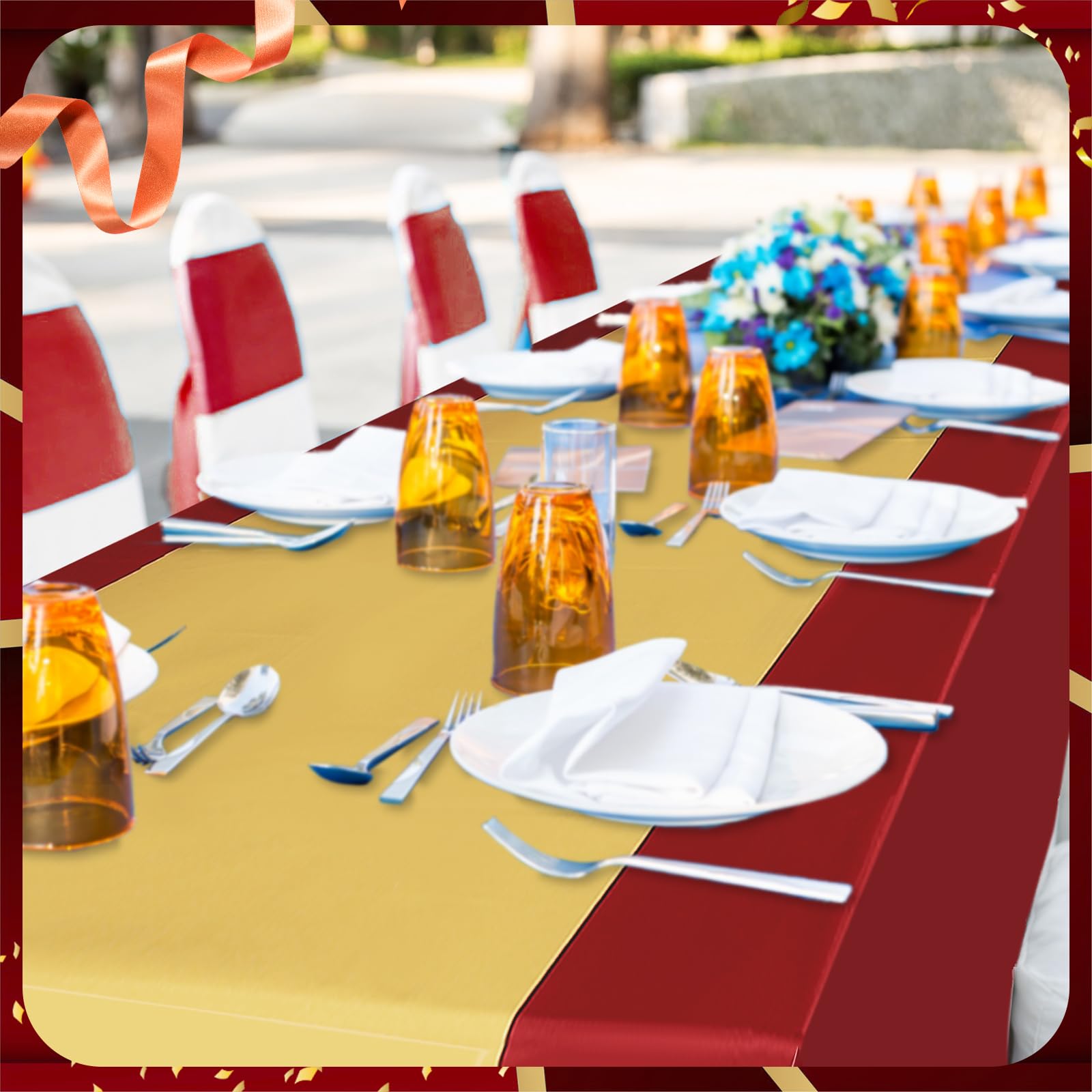 Elegant Design: the maroon and gold design of these plastic table cloth disposable adds elegance to any dining experience, you can use them directly or cut them to decorate your wedding table or desk according to your needs and preferences; Your guests will be impressed with the sophisticated atmosphere they create