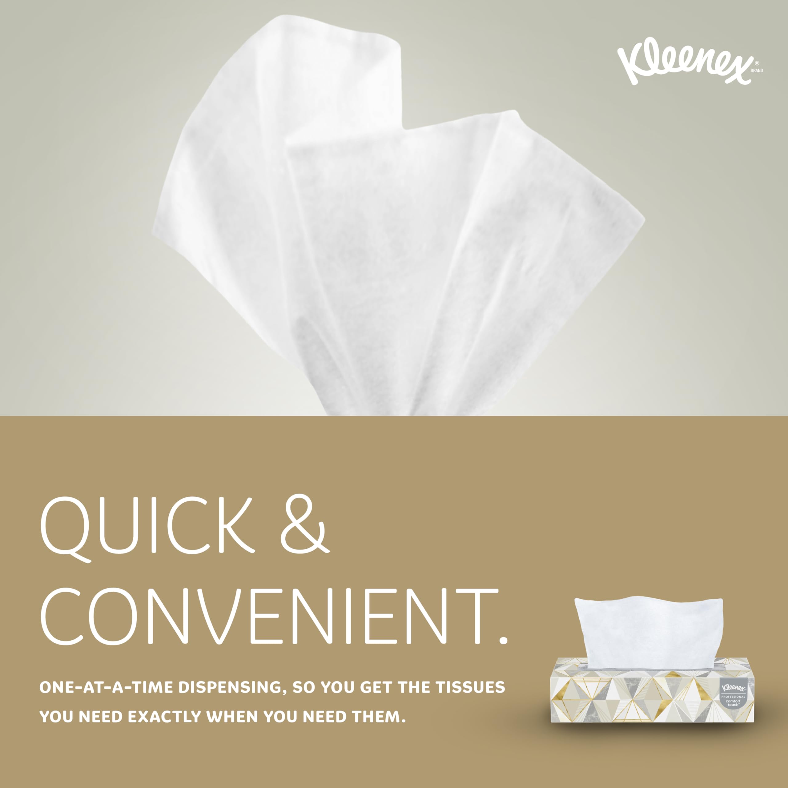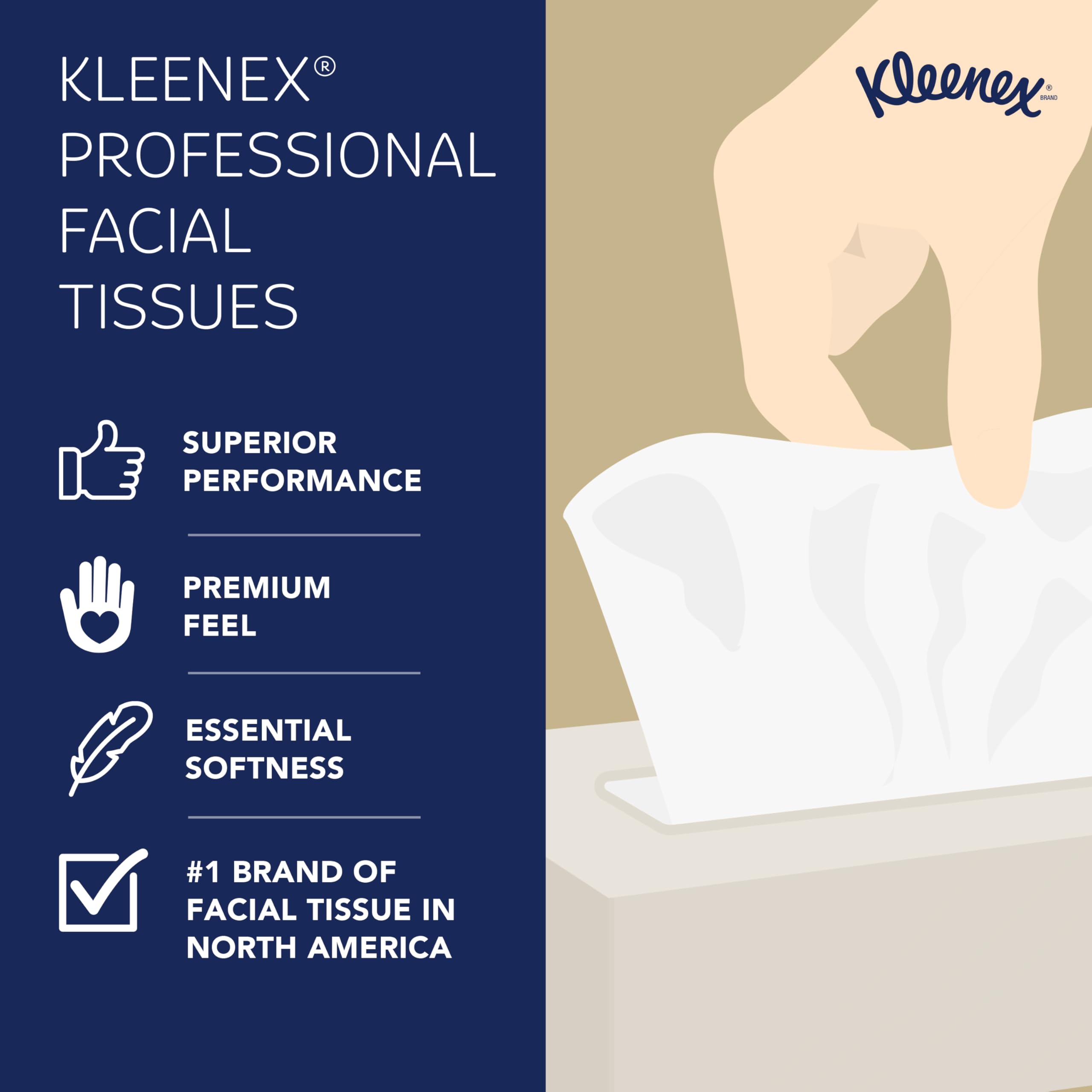 More people choose Kleenex Facial Tissue than any other brand, proving that all facial tissues are not created equal. Kleenex tissue offers superior performance, a premium feel and essential softness. When your employees, patients and guests see the respected Kleenex brand in your business and restrooms, they'll know that you select quality products, putting forth the best image for your business. It's a popular choice in healthcare and medical offices, hotels and lodging and businesses in general. For more than 100 years, Kleenex has delivered the highest quality among facial tissues, providing consumers with smart innovations like an ultra-soft feel. You'll want to buy them in bulk. Choosing Kleenex lets everyone know that you care enough to provide the very best.