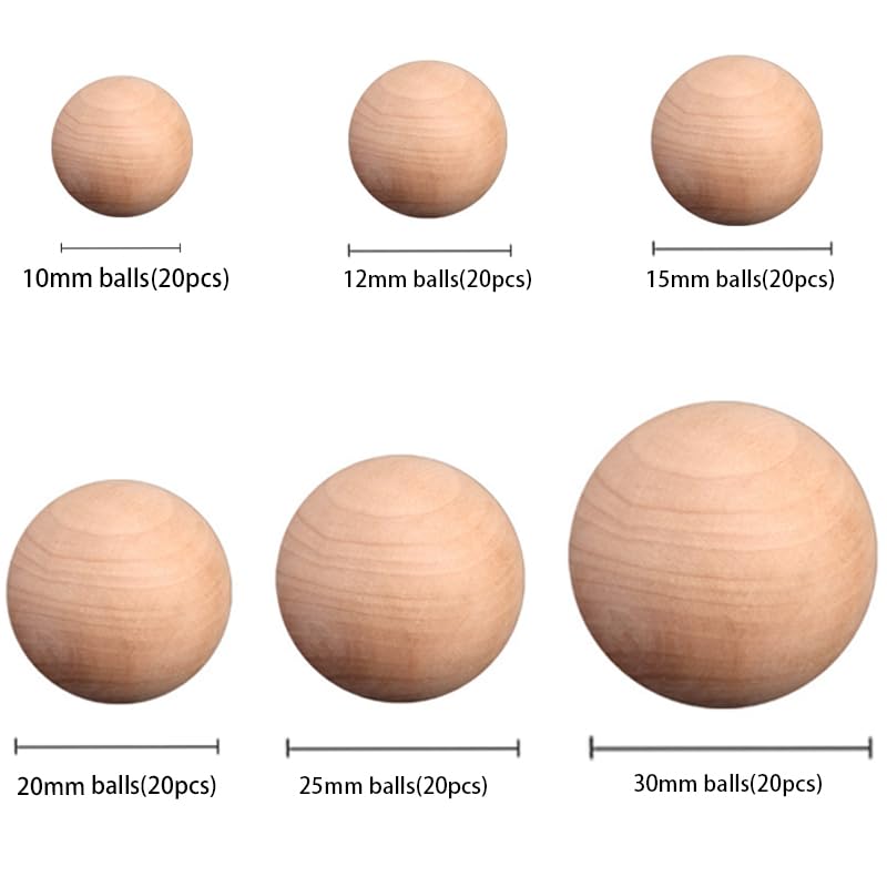 6 Different Sizes:You will receive 6 different sizes balls, so you can choose the right size of wood ball according to the needs of your crafts. 20pcs of each, enough quantity to use.