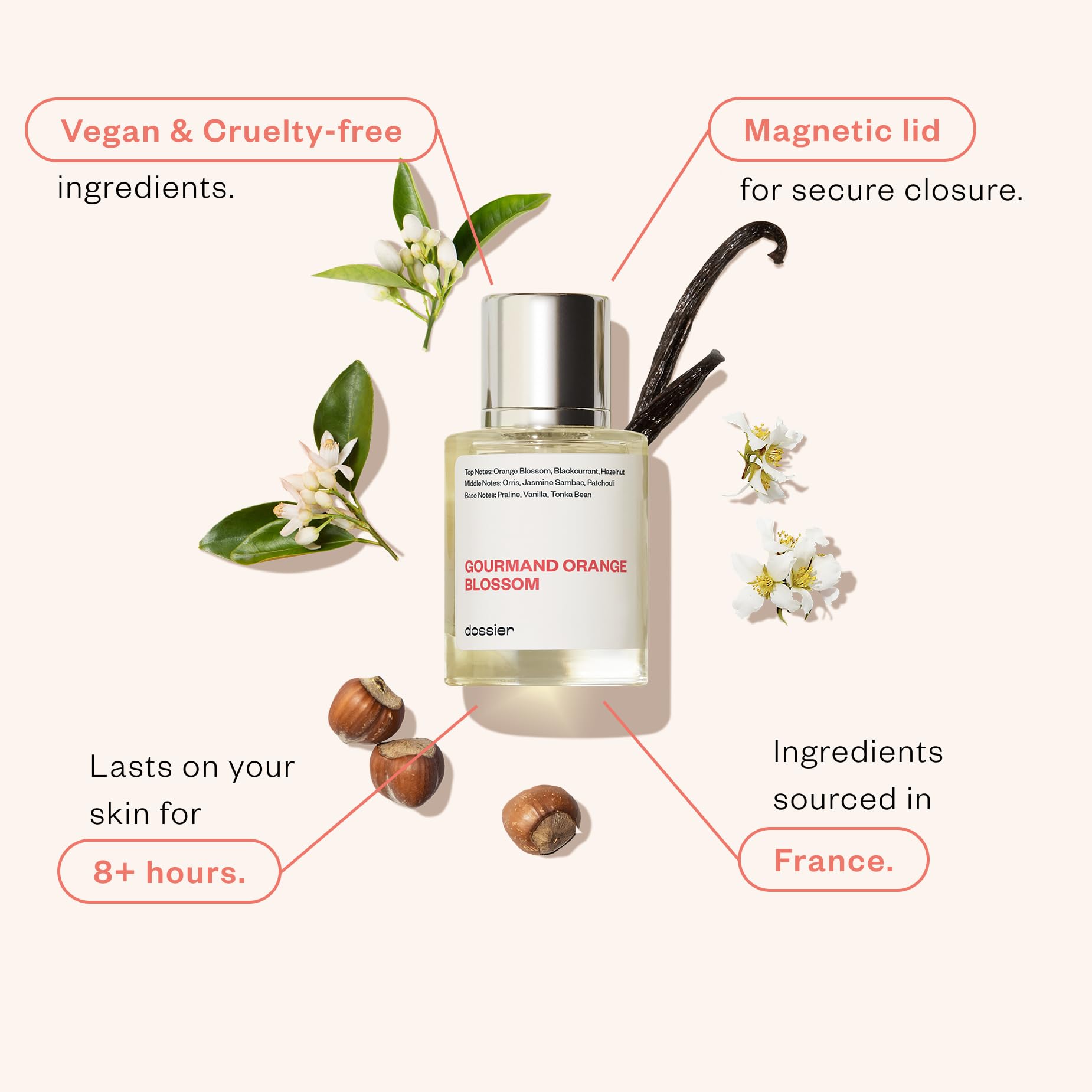 INSPIRED BY L.AN.COME'S LA VIE EST BELLE - Indulge in the luxurious scent of Gourmand Orange Blossom by Dossier. This sophisticated fragrance combines floral and gourmand notes for a radiant and inviting aroma.