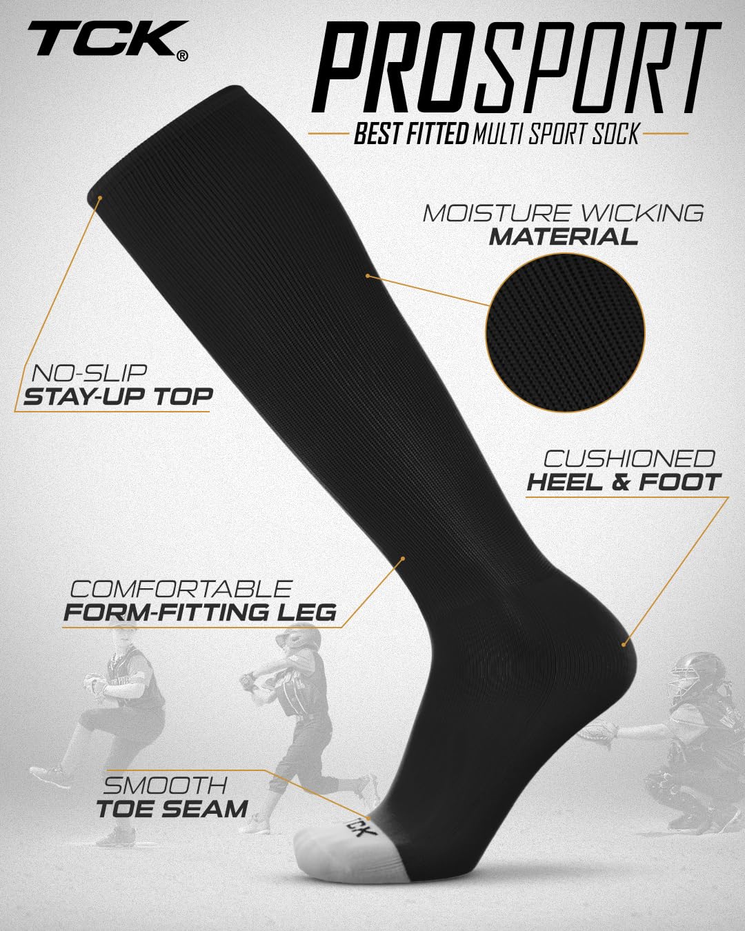 CLASSIC MULTISPORT ATHLETIC SOCKS: The Prosport is the gold standard for the classic athletic tube sock. This iconic sock has been produced for over a decade and has graced the feet of many top athletes. Hitting just below the knee, this sock is ideal for baseball, softball, football, field hockey and more! Available in over 20 team colors and 5 precise sizes, the Prosport is the sock to elevate your game to the next level.