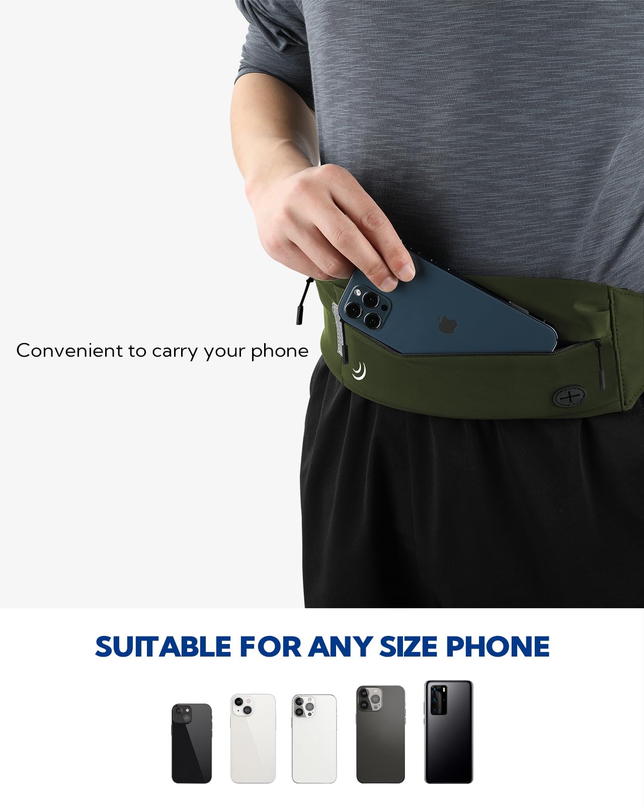 Adjust & Go: One-size fits waists 27"-48". Secure clip + stretch strap stays put during runs. Zero bounce, all comfort—mile after mile.