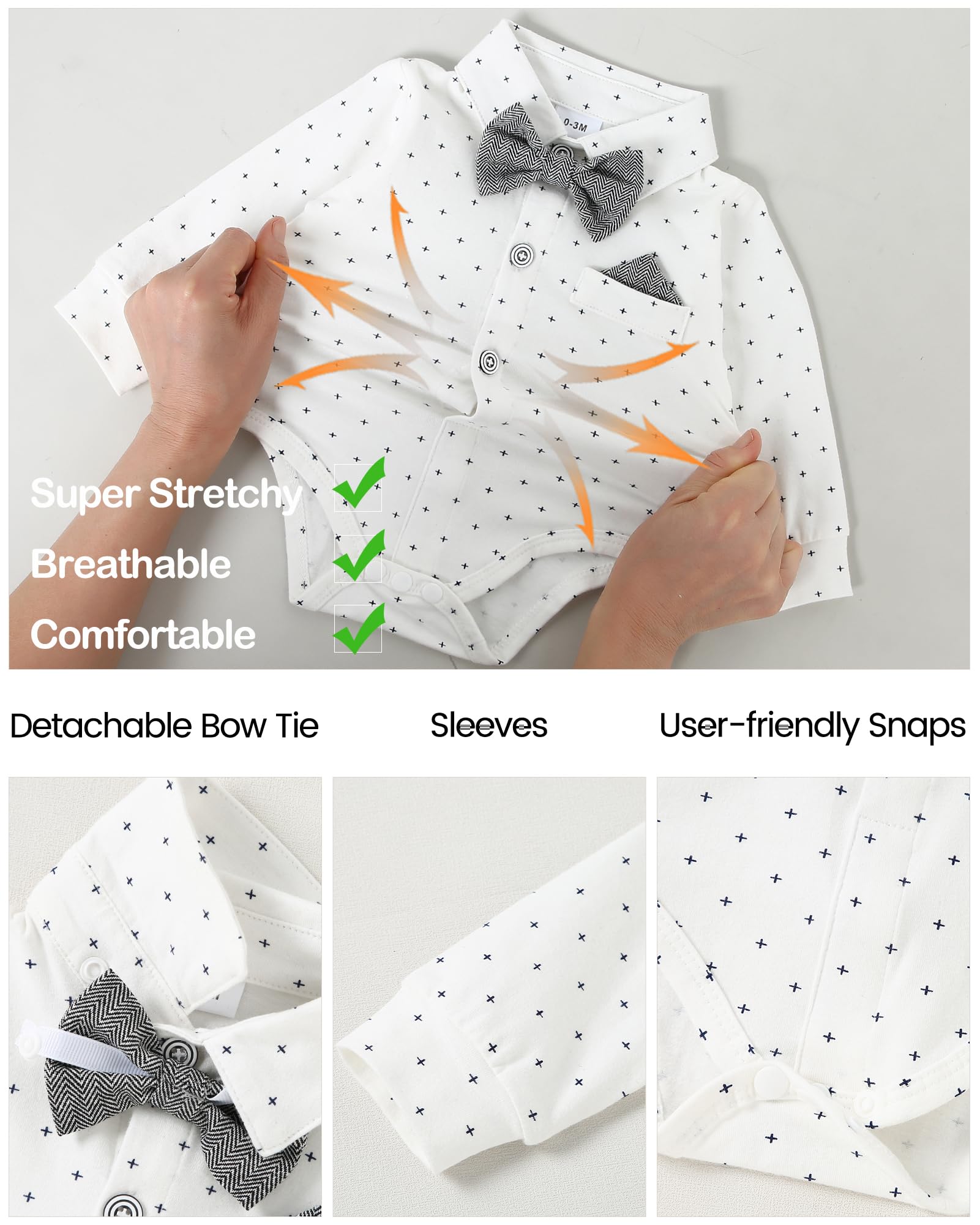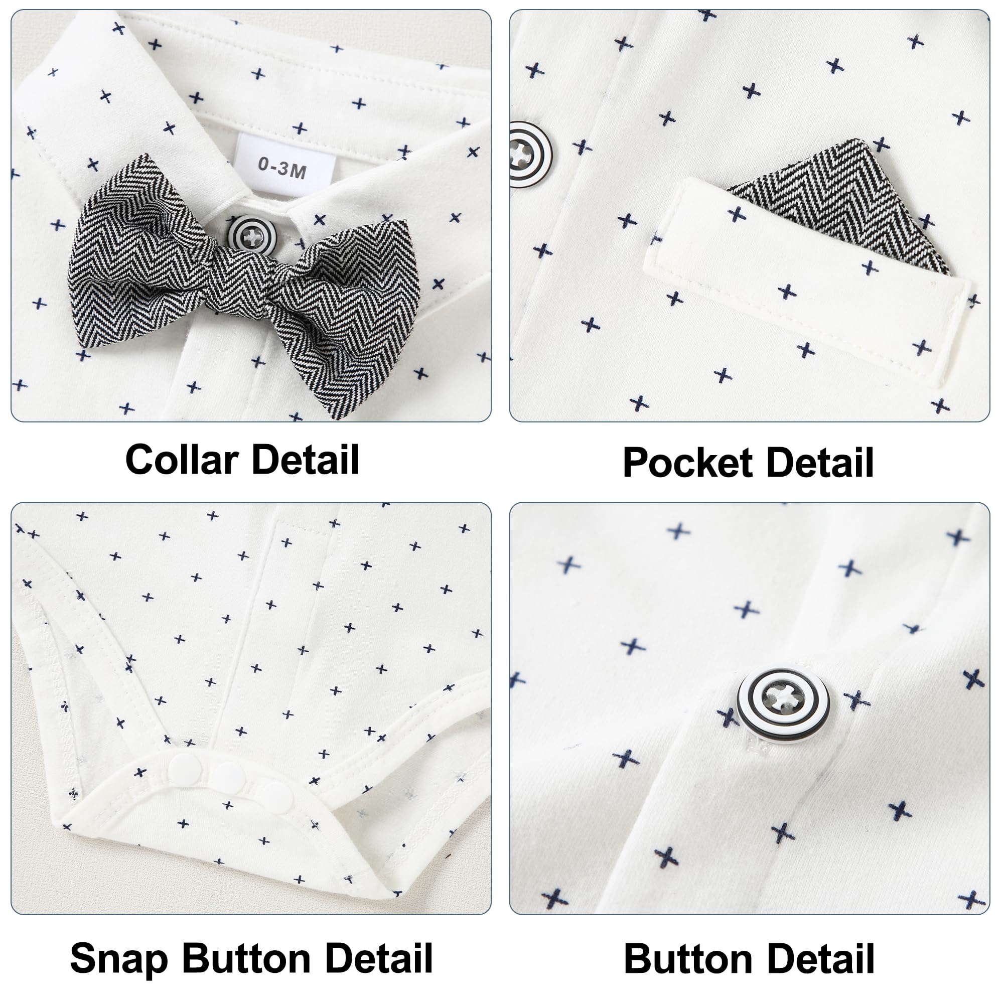 Size: For newborn baby boy clothes 0-3 months, baby boy suit 3-6 months, baby boys gentleman outfit 6-12 months, boys tuxedo suit 12-18 months. Suitable for wearing on various holidays, such as Valentine's Day, Easter, Halloween, Thanksgiving, Christmas, New Year, etc.