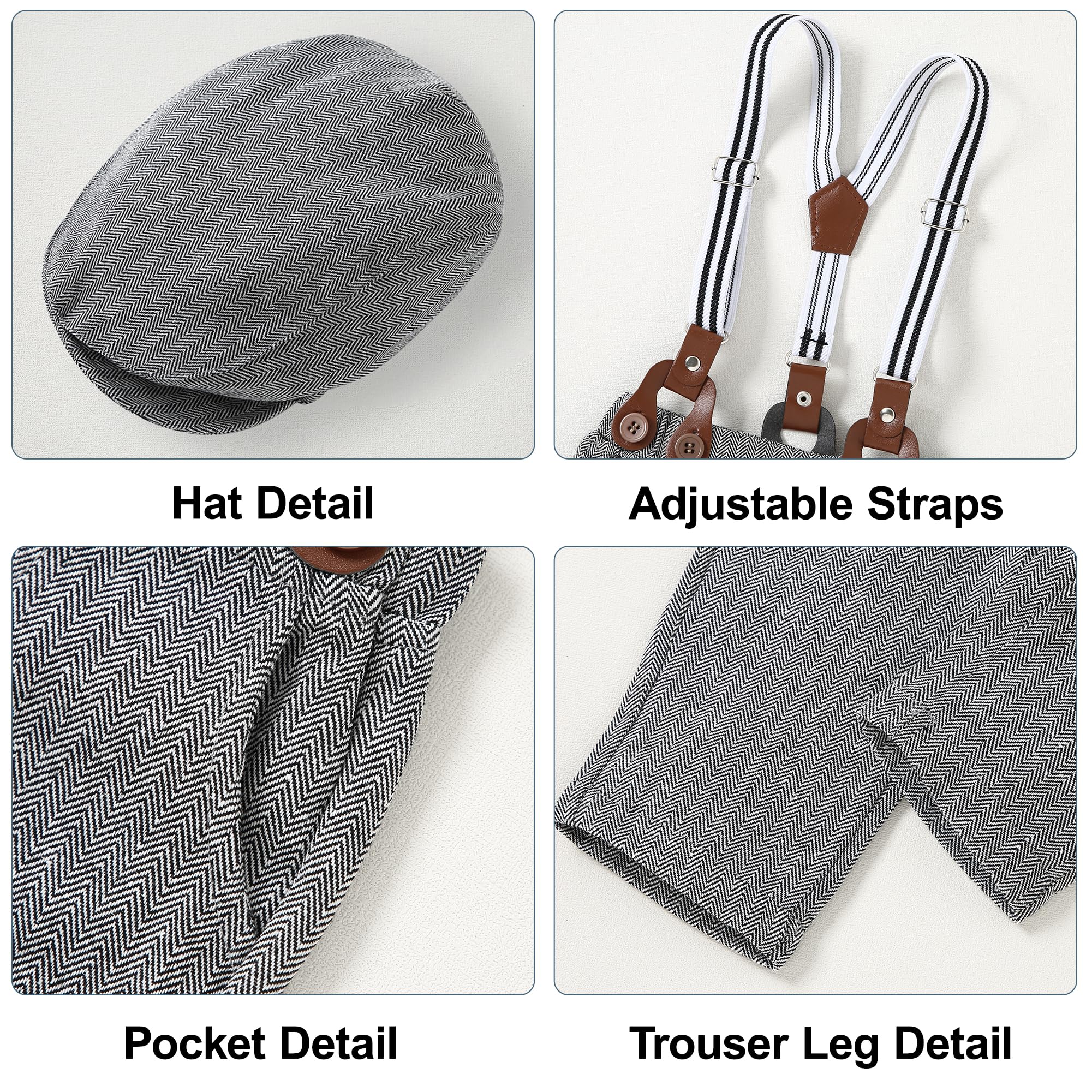 Package: 1x Baby boy shirt with bow-tie +1x Beret Hat+ 1x Matching detachable suspender. Machine wash and hand wash are both available.