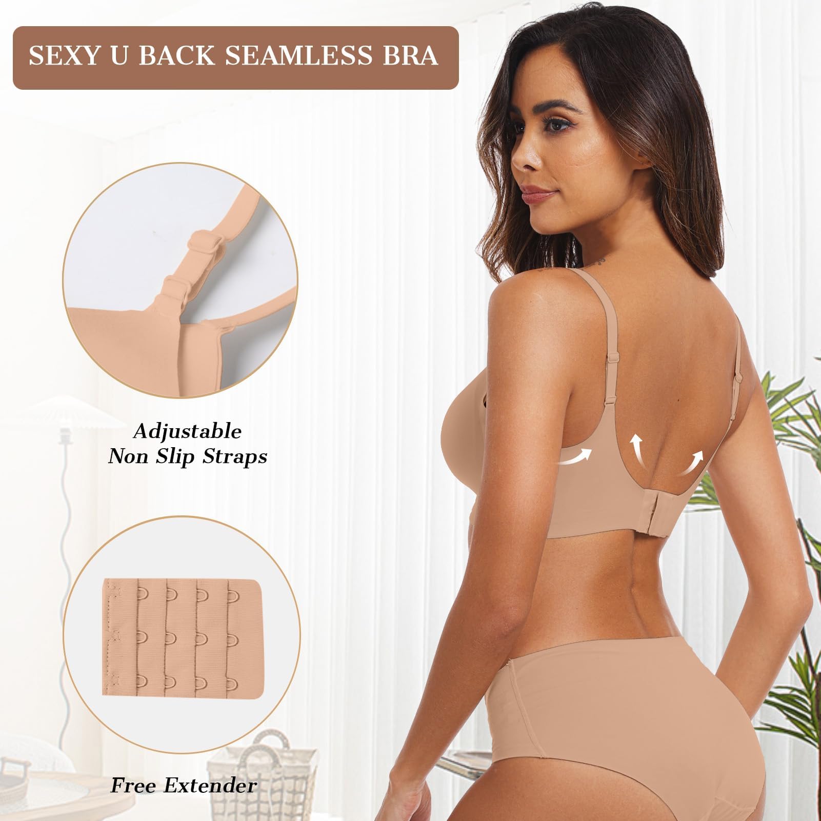 Adjustable 4 row hooks V neck bralette - The V neck bralettes for women feature 4 rows of adjustable hooks, with 3 hooks on each row, providing additional support and concealing back fat, making it easy to find your perfect fit. The V neck design of this bralette gives you a sexy cleavage look. It is an ideal t-shirt outfit bra for women.