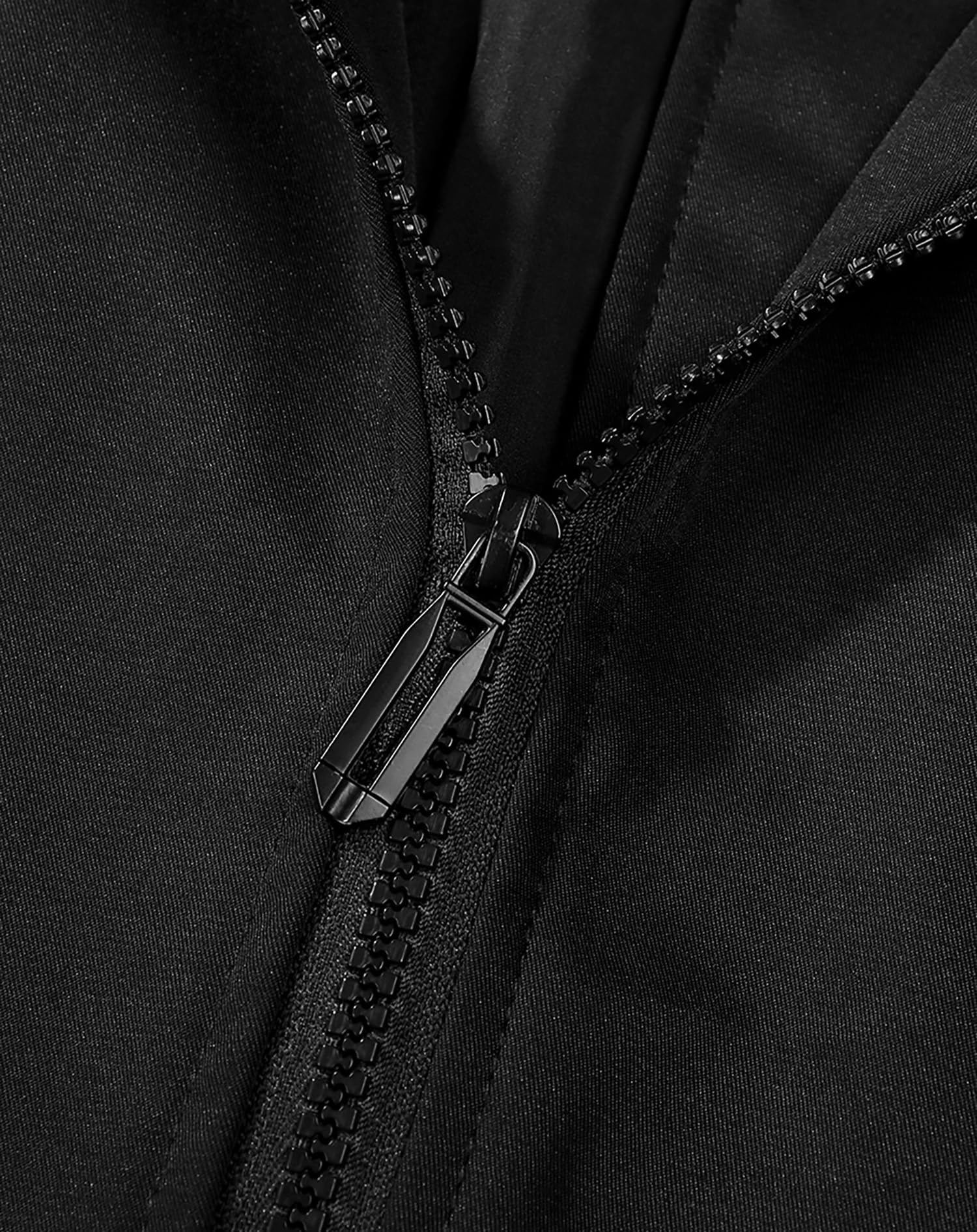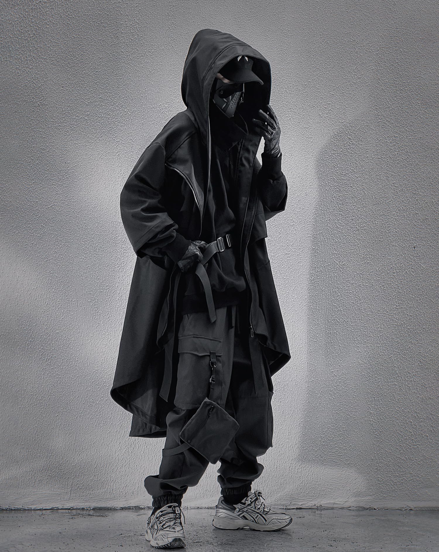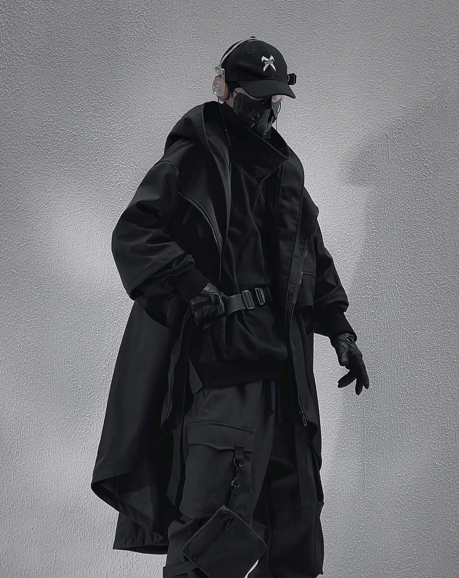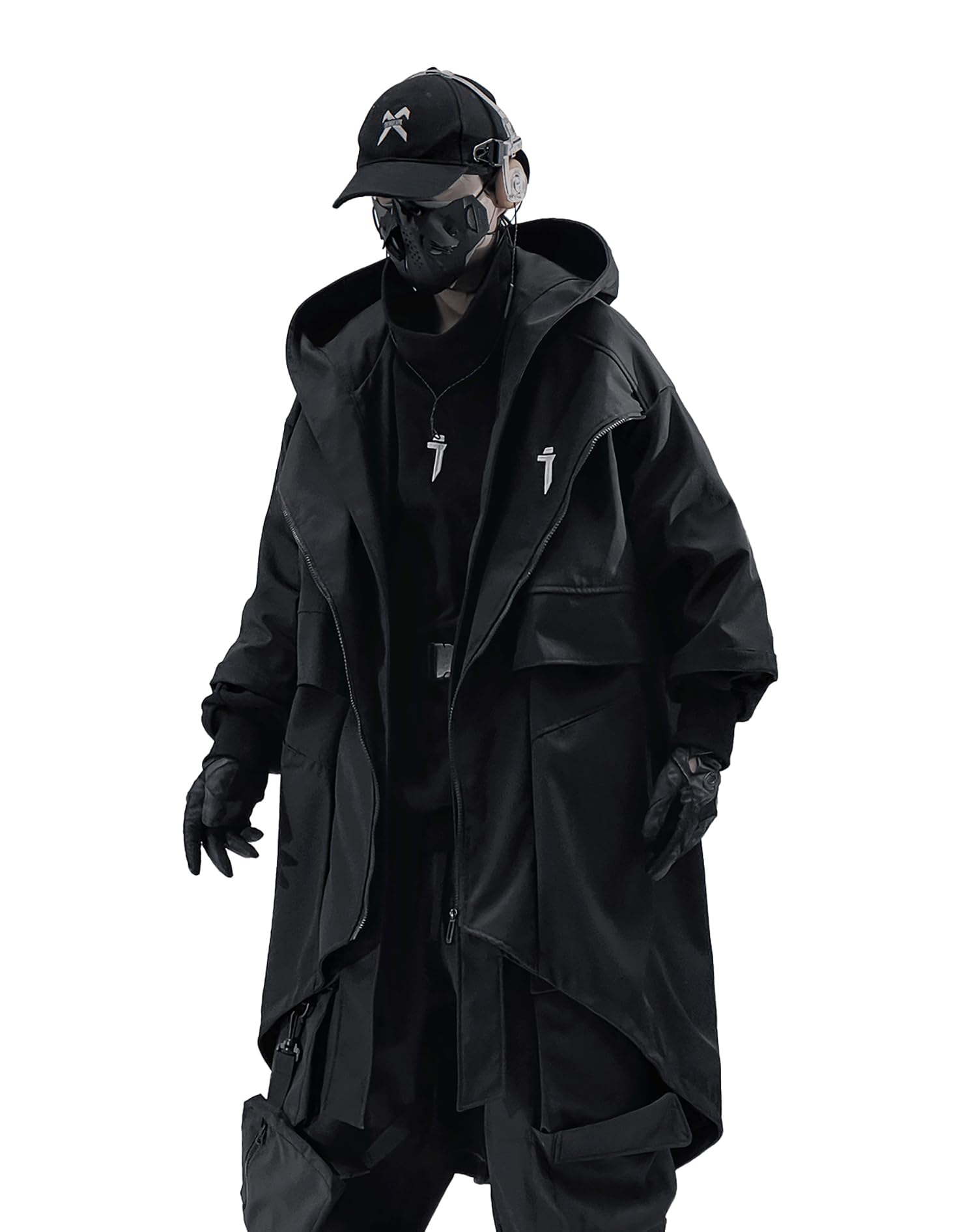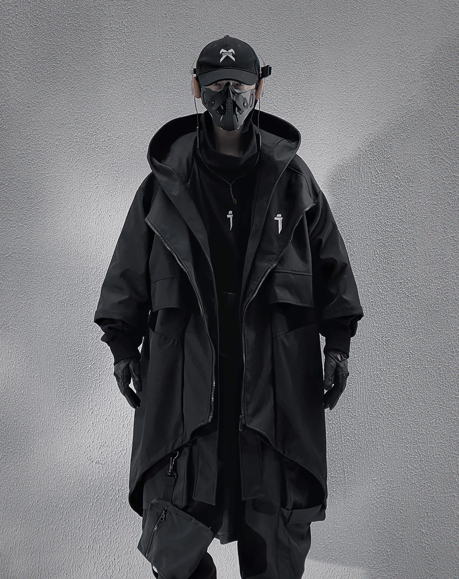 The jacket features a smooth zipper closure, offering easy wearability while maintaining a clean, structured look. Designed for convenience, it complements both casual and techwear-inspired outfits