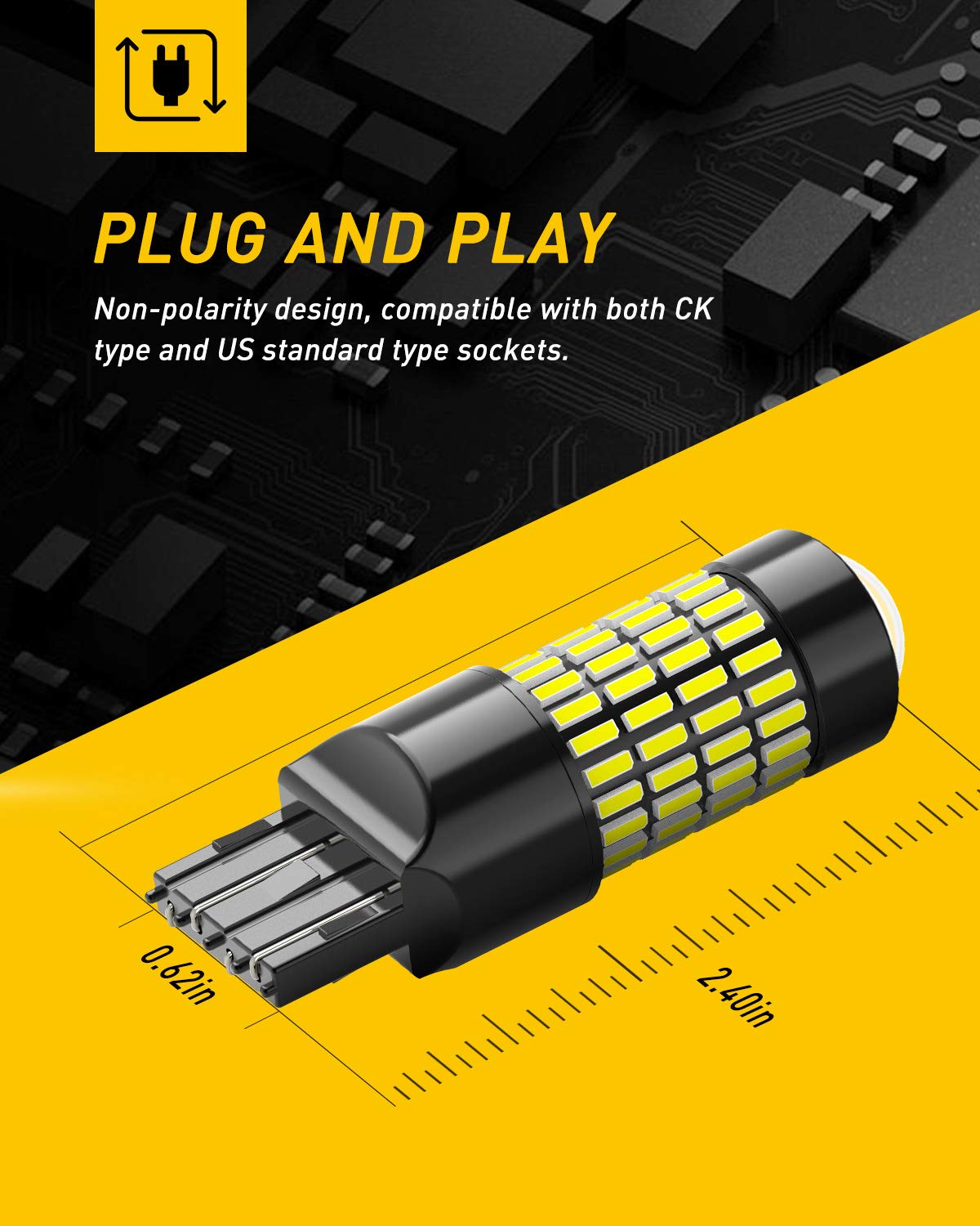 Multi-Application: Used for backup reverse lights, turn signal lights, etc. Compatible for both CK and US standard socket: 7440, 7441, 7443, 7444, 992, W21W, etc
