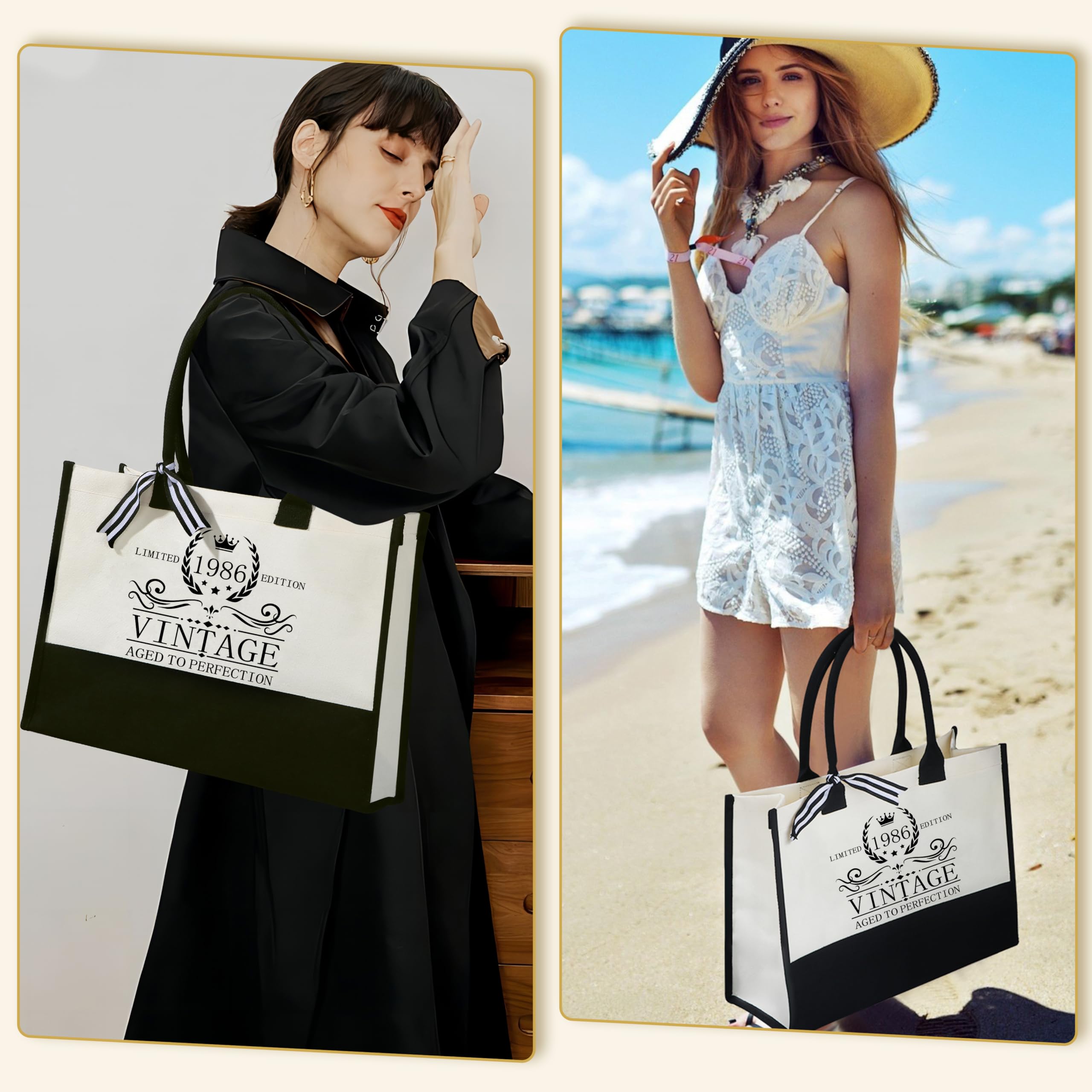 【VINTAGE 1986 BIRTHDAY GIFTS FOR HER】: The unique 1986 vintage tote bag and 1986 cosmetic bag are the perfect gift for a woman's 40th birthday. Designed for a woman born in 1986, the 40th Birthday tote combines practicality and style while also demonstrating care for her unique milestone age. The texture and delicate details of the canvas highlight the high quality and elegant style that perfectly reflects her maturity and confidence