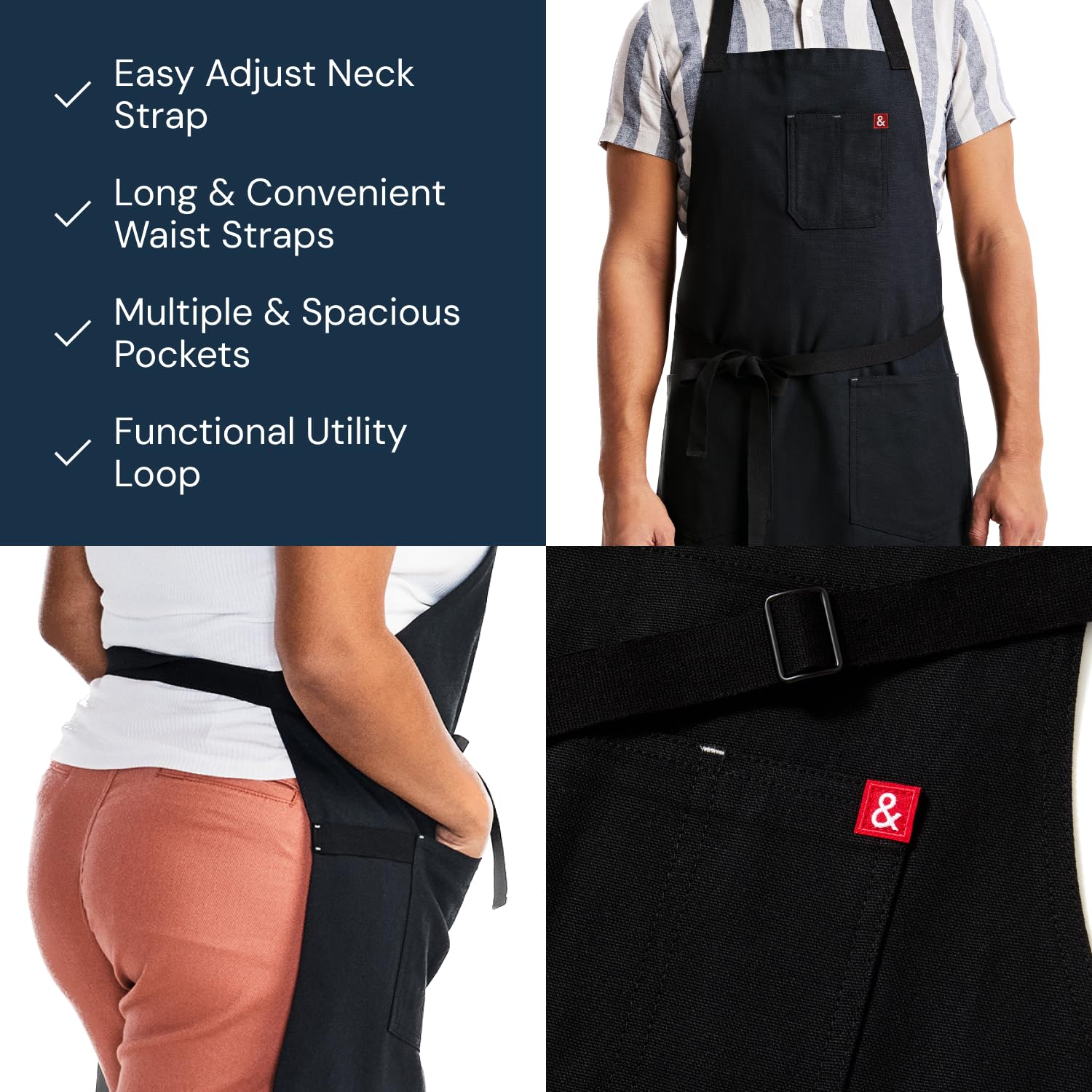COMFORTABLE & LIGHTWEIGHT: Our cooking apron has adjustable neck and waist straps to provide a customizable fit, ensuring ample coverage and easy-breezy movement as you're cooking. The Essential Apron is perfect for grilling or BBQ for your cookout.