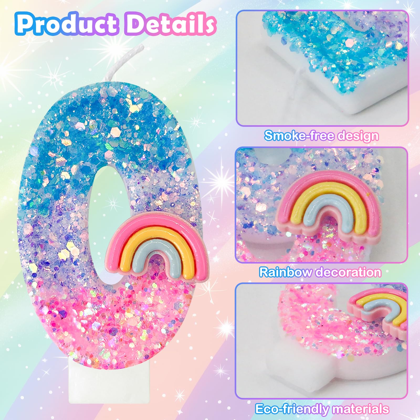 Excellent Design: Add a touch of color to your celebrations with our rainbow number candles, which are adorned with vibrant rainbow decorations. These eye-catching number candles are the perfect addition to any birthday cake, making them a must-have for your celebrations