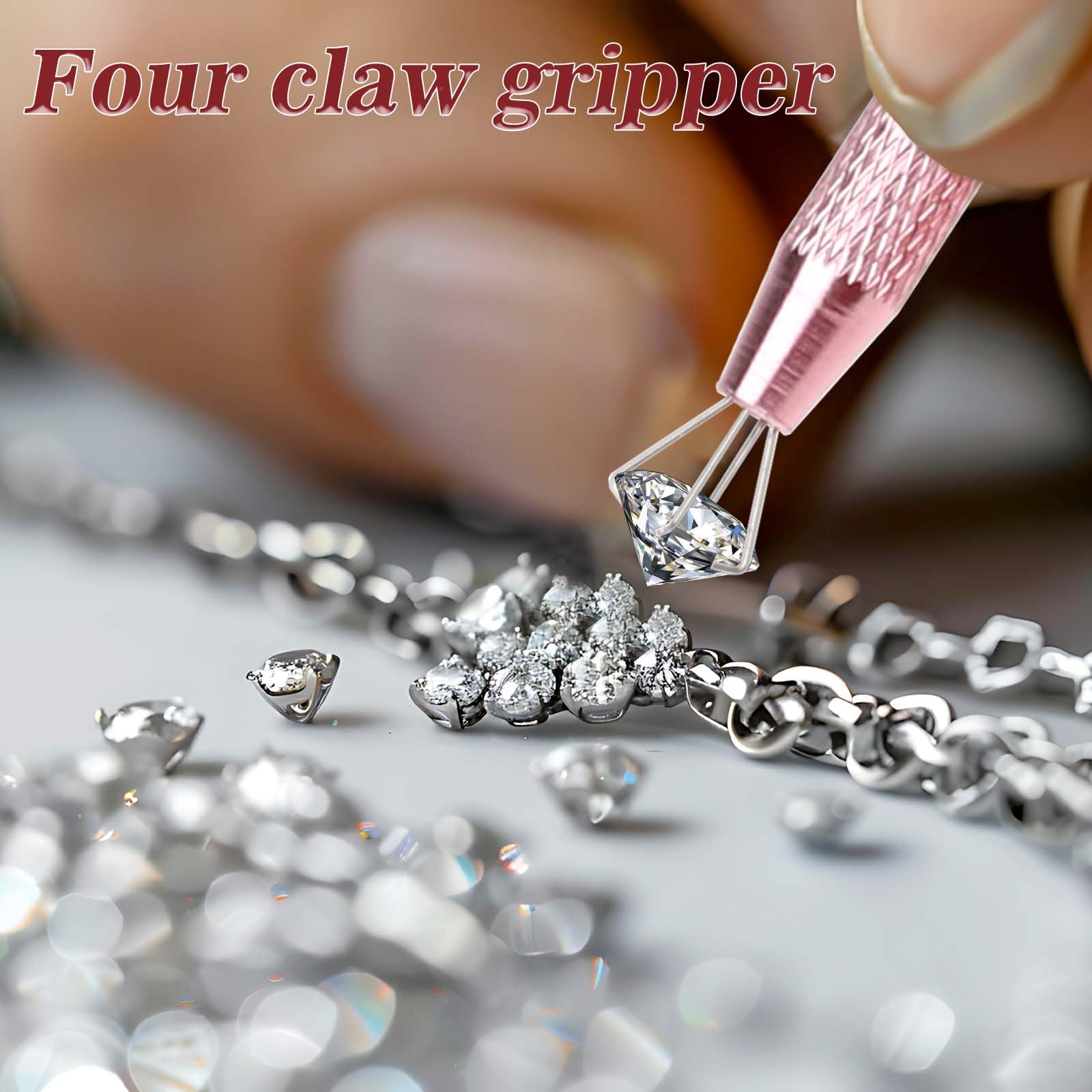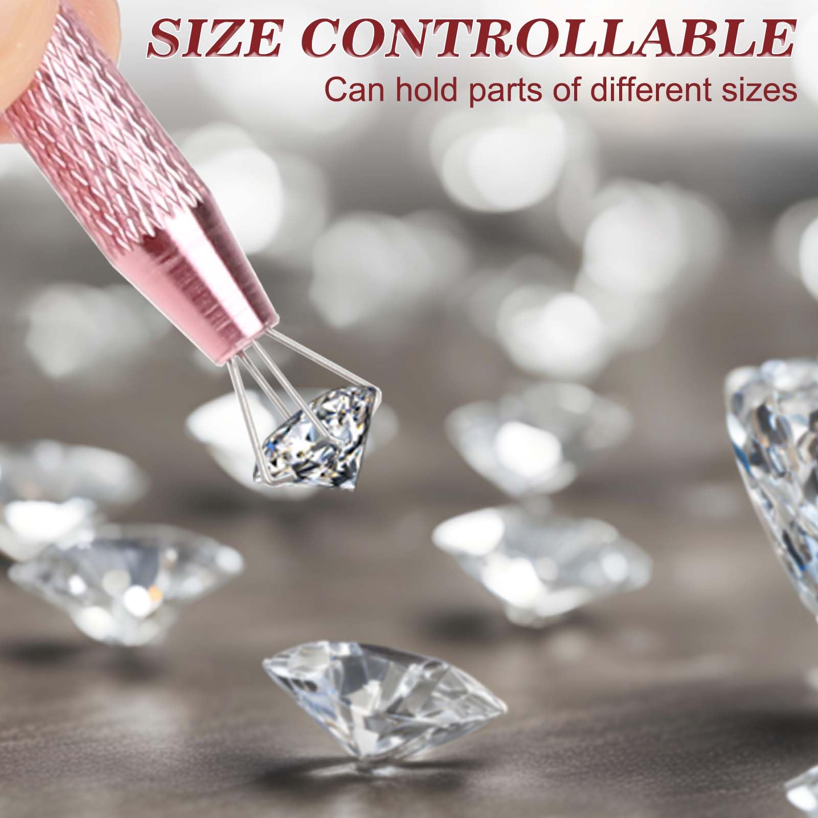 【Easy to Use】Jewelry pick-up tool operates smoothly press the diamond claw tweezers, which expand to capture, with adjustable gripping strength to accommodate varied object sizes.