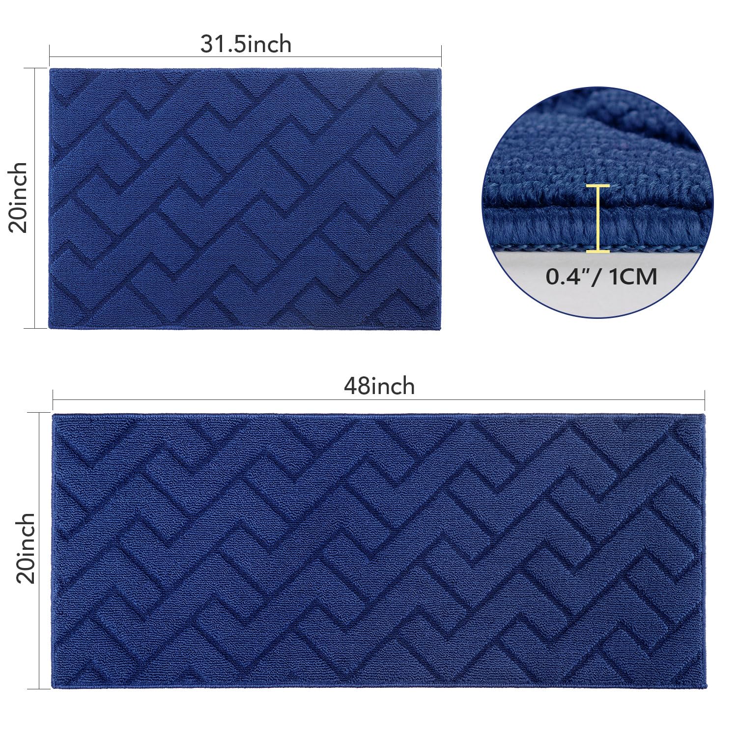 PREMIUM Polypropylene Kitchen MAT SET: You will get 20"x 31.5" & 20"x48" kitchen rug sets, which are made of high quality Polypropylene . As a floor rug used in high traffic cooking areas, large size kitchen runner rug is a great way to keep your kitchen clean and tidy. Great stain-resistant properties protect the floor from oil, dampness, sauces or food particles.Rugs and mats suitable for kitchen. The density and plushness of our pile surpass that of most other brands.