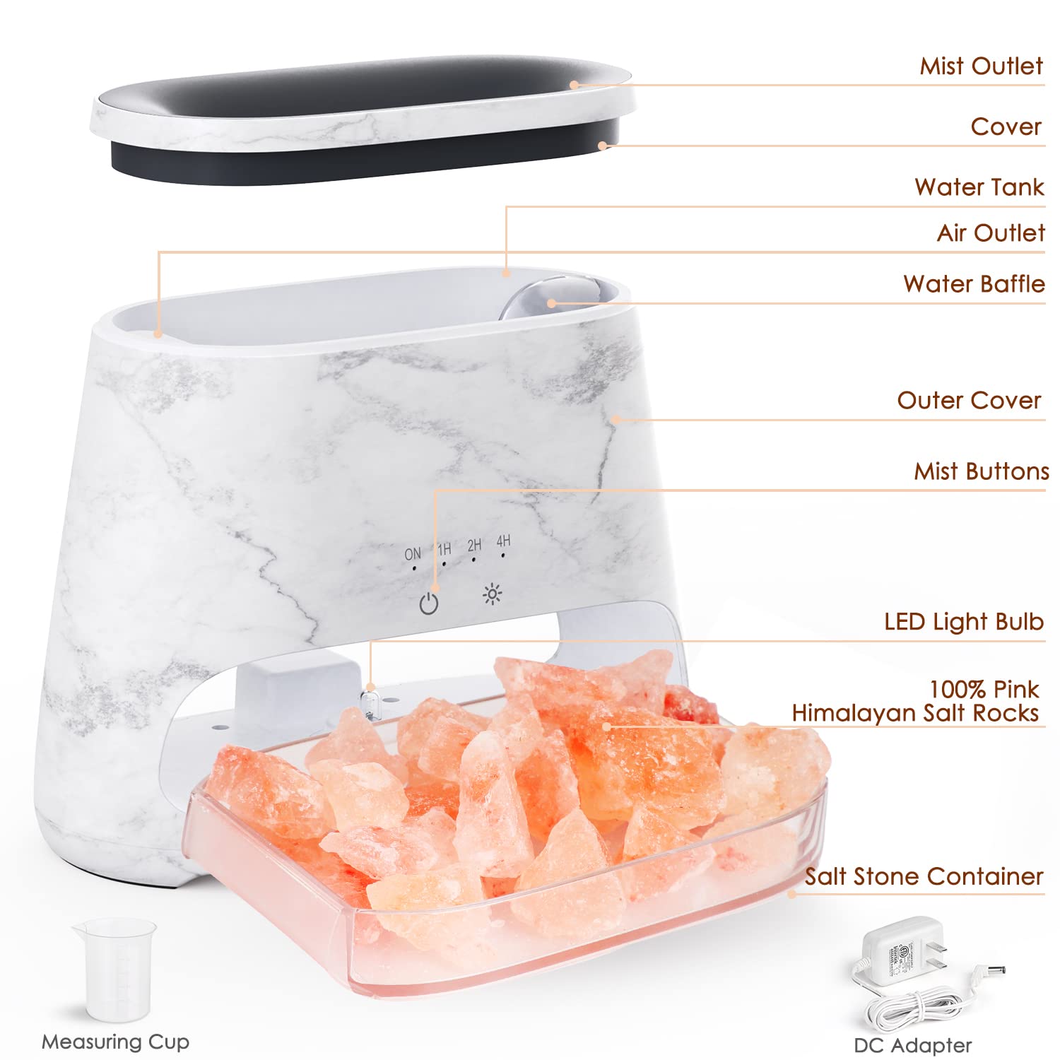 SALKING 2-in-1 Ultrasonic Essential Oil Diffuser & Himalayan Salt Lamp, Aromatherapy Diffuser Cool Mist Humidifier with 3 Brightness, Salt Therapy Lamp, 100% Pure Himalayan Salt Rock, 150ml (Marble)
