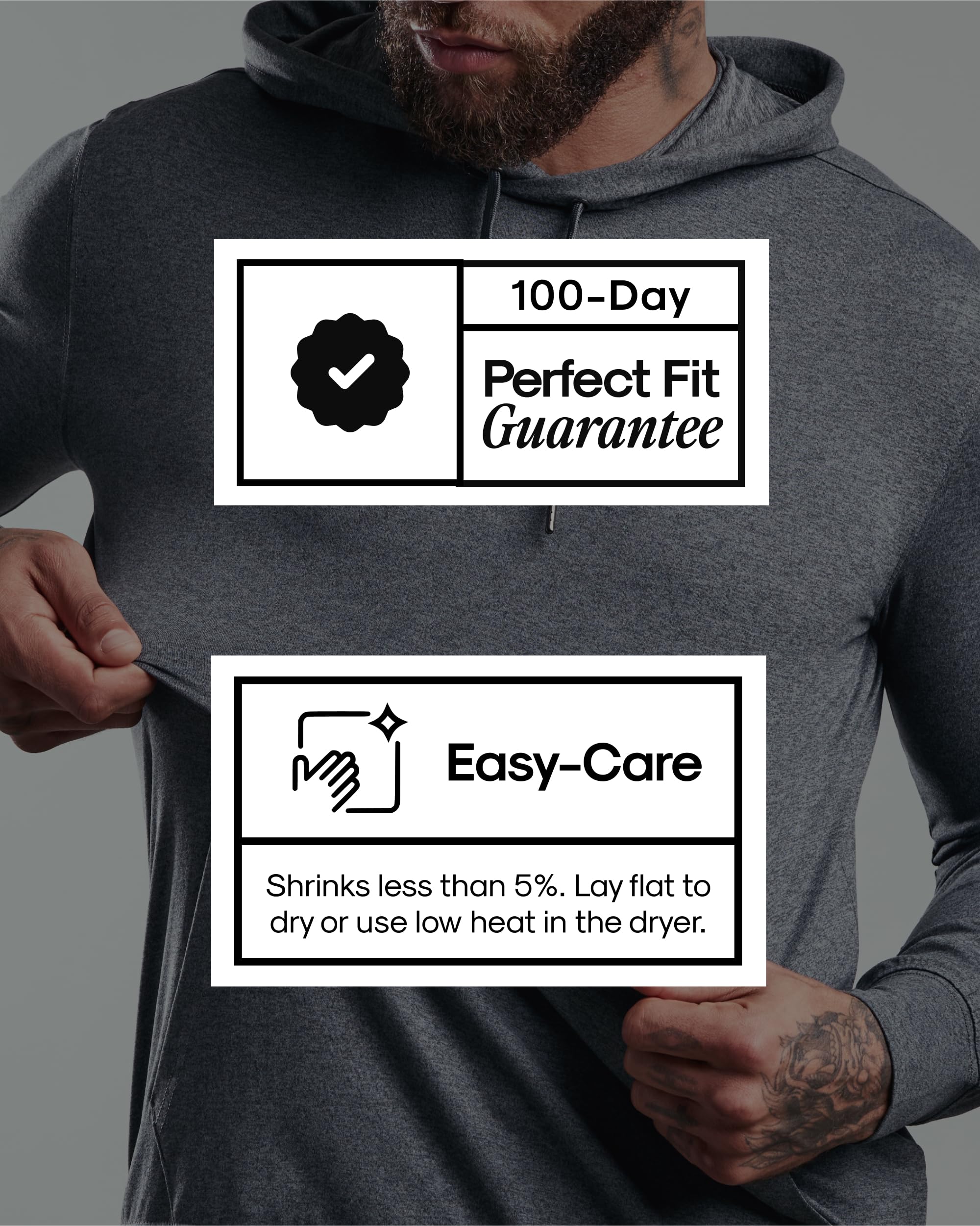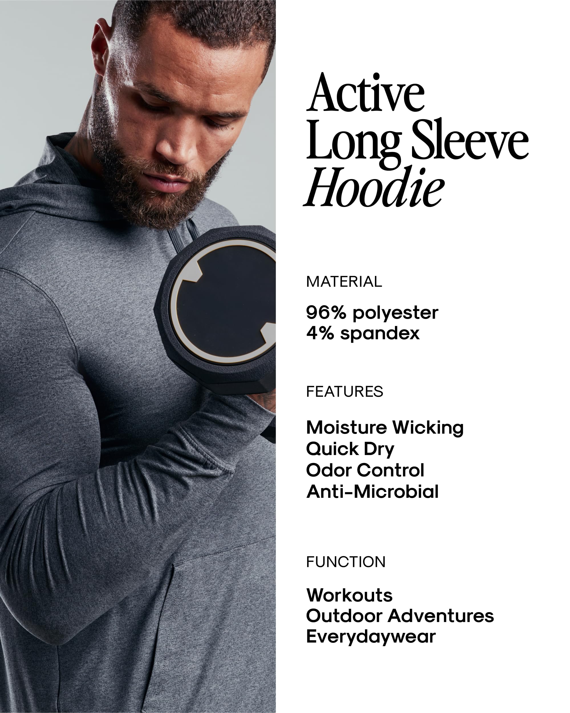 PERFORMANCE WHEN ACTIVE: Stay dry and fresh in the Active Hoodie—moisture wicking, quick-dry, odor control, and UPF 30 (UPF 15 on white). Lightweight 96% polyester/4% spandex with stretch, tagless comfort, and minimal shrinkage for repeat wear.