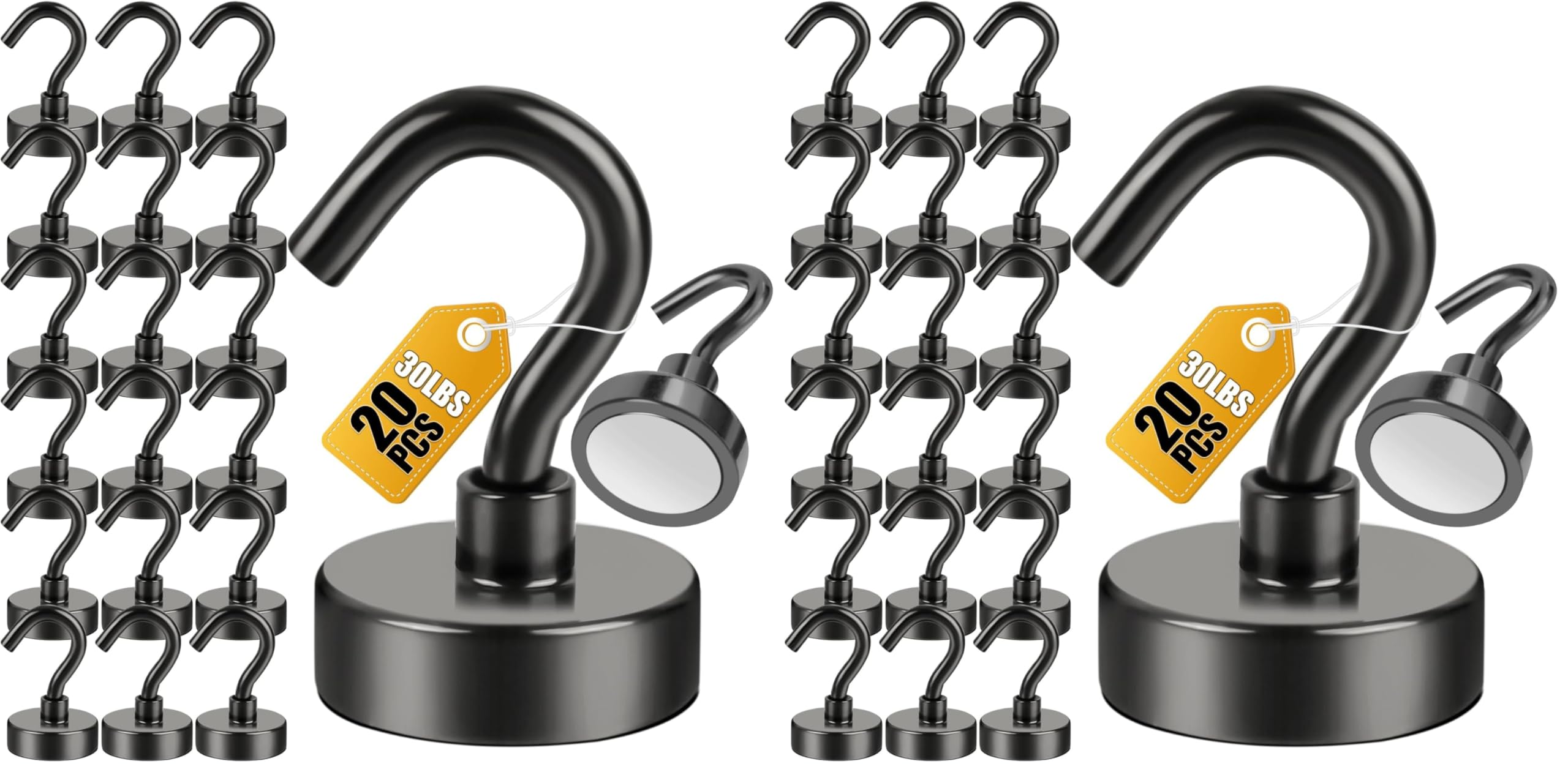 【Hanging Capacity】These black magnetic hooks are able to sustain maximum weight up to 25 lbs on vertical hanging and the power reduced by 2/3 on horizontal hanging. Be careful when using rare earth neodymium magnet Hooks, otherwise your fingers will get hurt.【Industrial Grade】Strong magnetic hooks are made of high grade and exquisite quality rare earth neodymium magnet and steel. Compact and lightweight with strong force, which can be strongly attracted by iron, nickel and other ferromagnetic material.【Excellent Black layer Coating】Strong rare earth neodymium magnet hooks are plated with 3 layers of protective coatings - Nickel + Copper + Nickel (Ni-Cu-Ni), which can greatly resist rust and corrosion, making magnetic hooks ideal for long term use.【Versatile Use】Black magnetic rare earth neodymium hooks are perfect for hanging grill tools, decorative lights and tool accessories, also be widely used in cruise, home, kitchen, workplace office, garage, indoor, outdoor and anywhere there is iron or steel. No drilling holes, No sticky residue, No bolt or screws; Easy to install or remove and reusable.【Quality Guarantee】Strong rare earth neodymium magnetic hooks are extremely high quality and are checked during and after production for quality, your purchase is protected. Please contact us if you have quality problems, we are very pleased to assist you to refund or make replacement.