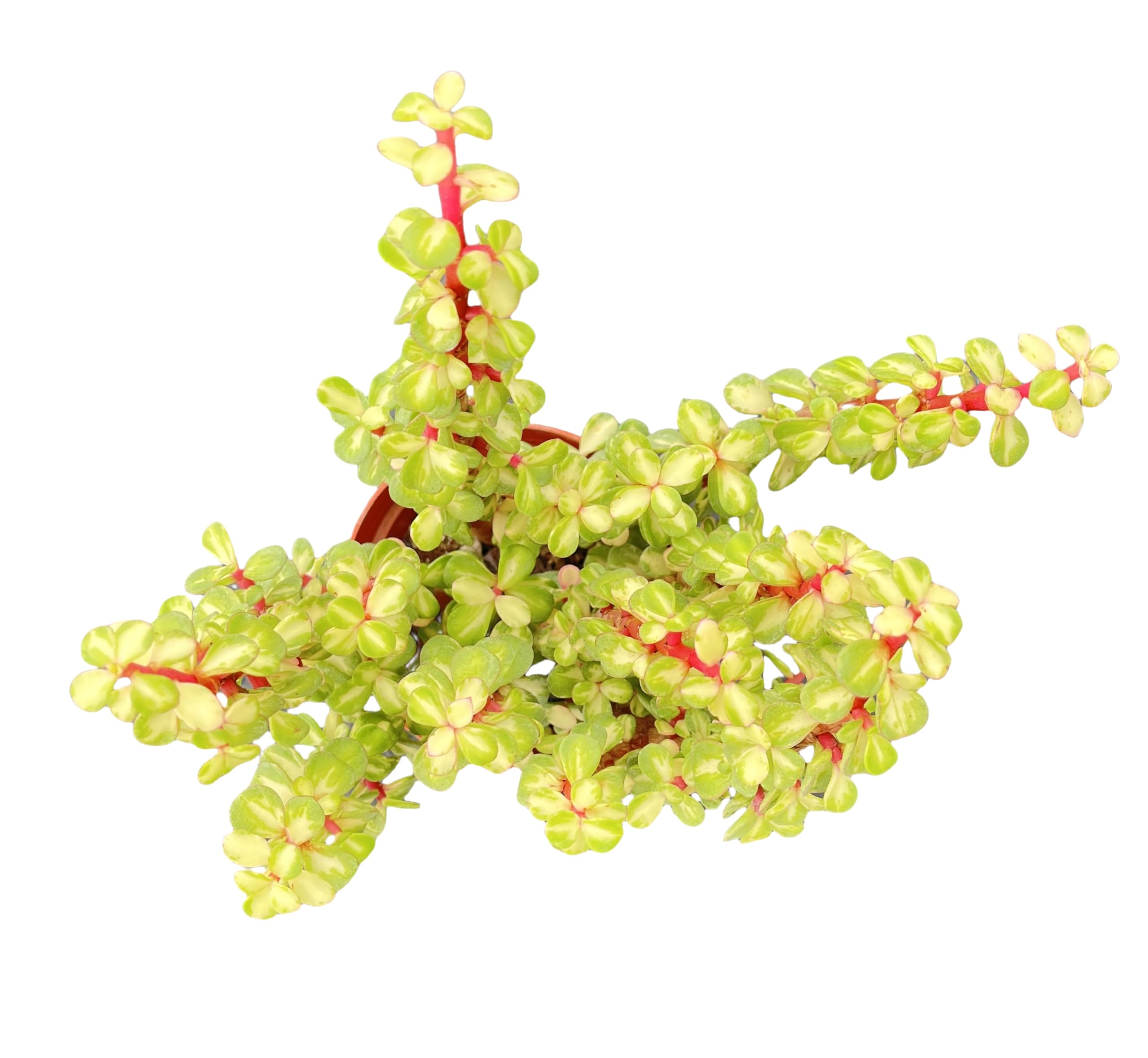 Easy to Care: Like other cactus, Portulacaria afra 'Variegata' can't survive outdoor in cold winter. Bring them indoors and place them by the window to get as much sunlight as they could or under a grow light. To ensure the health of succulents, they need porous, well-draining soil to live in. Succulents require little watering but don't like to sit in wet soil. The best way of watering is the soak and dry method. Water thoroughly when soil is dry