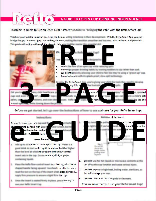 SLOW-FLOW TRAINING (NOT SPILL-PROOF) – Designed to teach natural sipping skills without suction or valves. The Reflo insert gently controls flow for a slow-spill experience that mimics real drinking—no mess, no overwhelm. Perfect for toddlers transitioning from bottles or sippy cups.