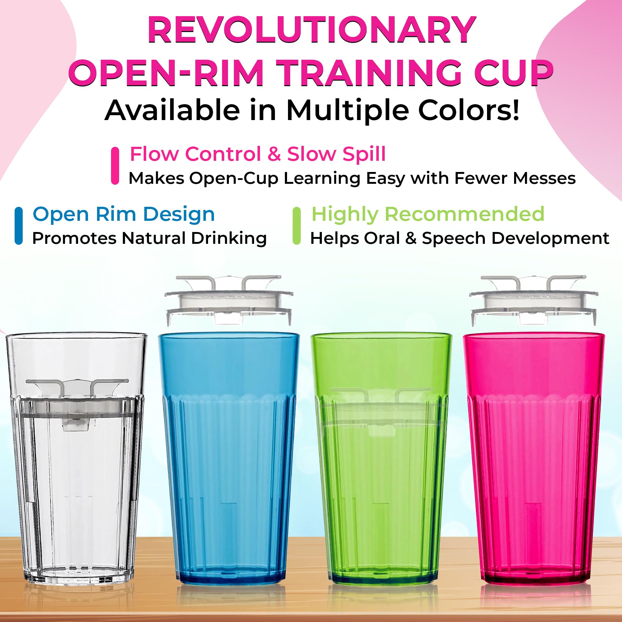 PEDIATRICIAN-RECOMMENDED DESIGN – Splash-resistant and development-friendly. The spoutless, valve-free construction supports proper oral and speech development while giving little ones real control at mealtime. Patented 360° rim delivers steady flow from any side.