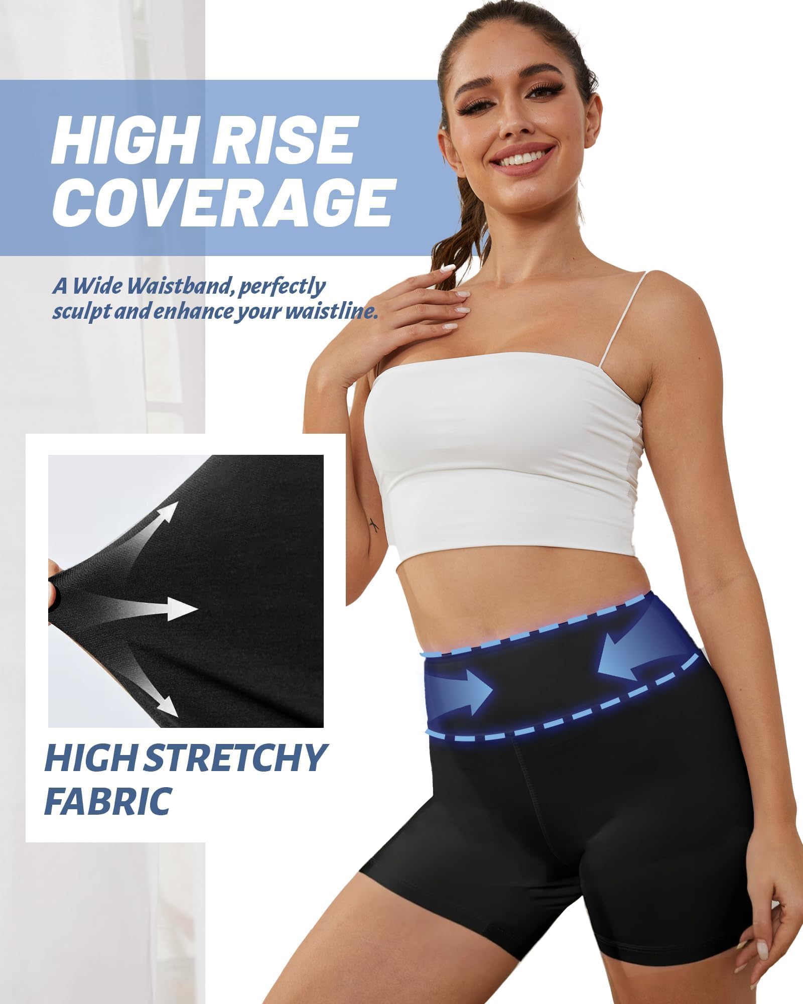 FLATTER YOUR BODY: Featuring a wide waistband, these high waist spandex shorts securely provide coverage to your tummy, fit firm with your body. So say goodbye to baggy gym shorts, and show off your cute figure confidently