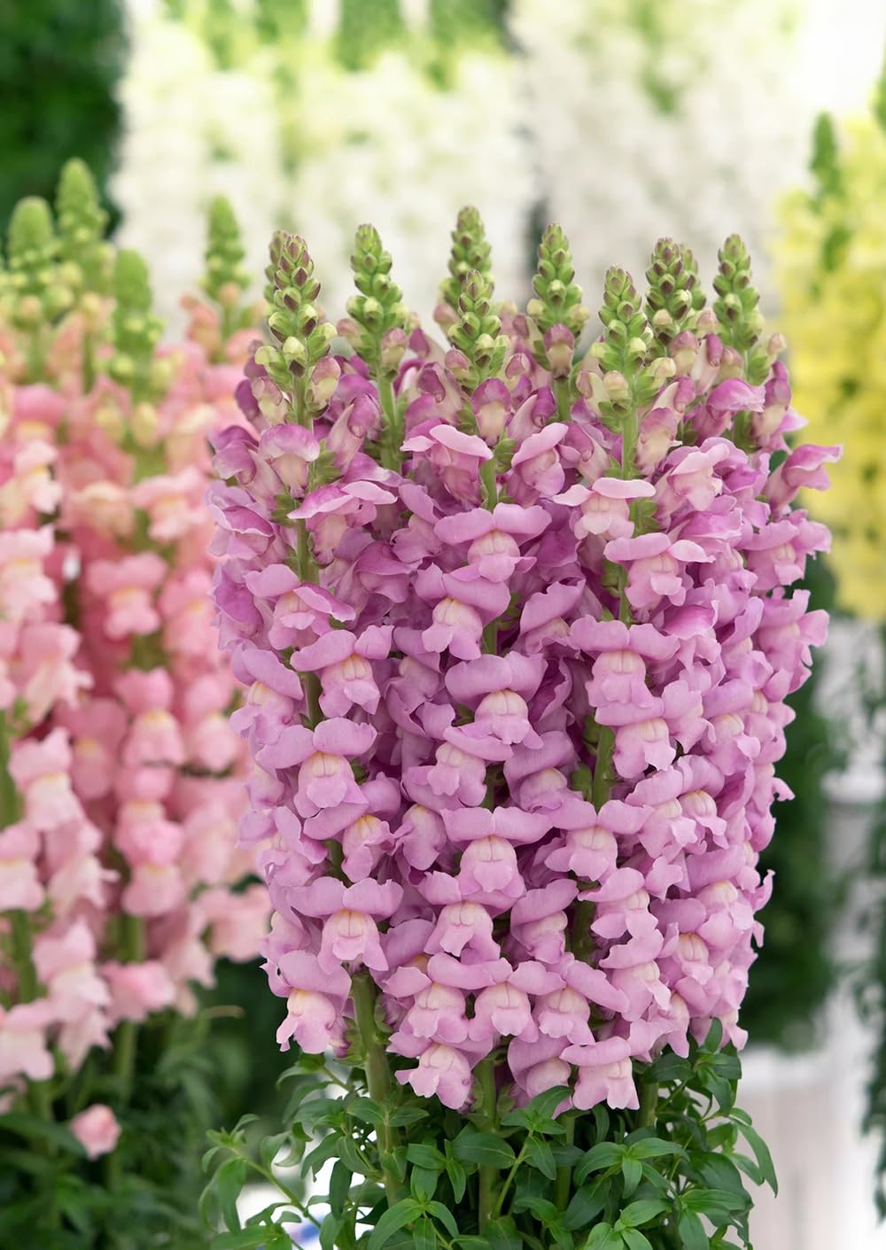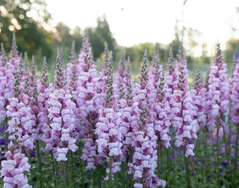 Snapdragons are known for their tall, spiky blooms and distinctive 'dragon mouth' flowers, adding an enchanting and playful touch to any garden or landscape.