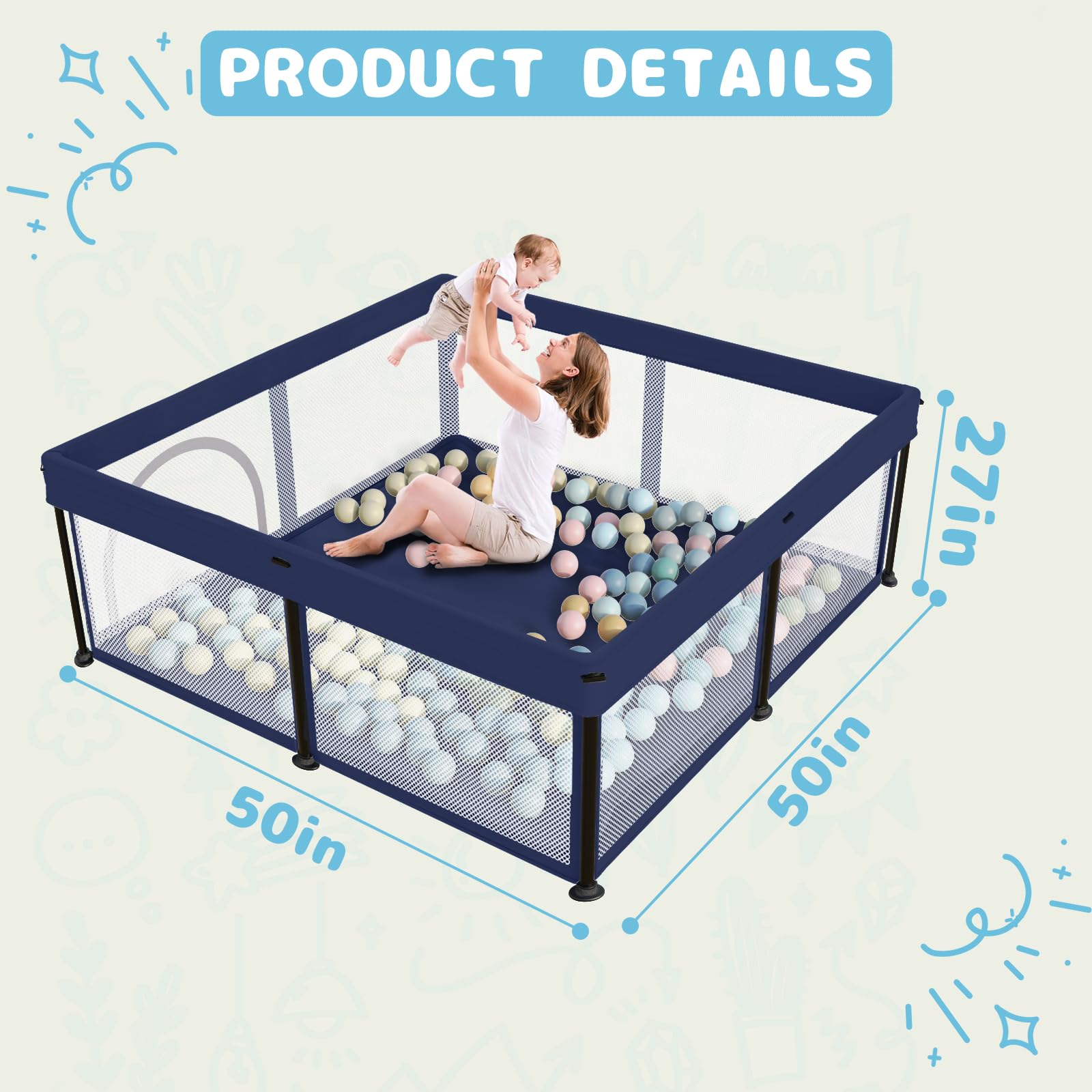 【LARGE PLAY AREA】Our playpen for babies and toddlers extends to 50 "x50 "x27", plenty of space for baby to crawl, play and read with baby, giving baby room to use their imagination. Meanwhile, our baby playpen foldable is all wrapped with soft cloth, there is no danger of pinching. You can let your child enjoy playing in this center.