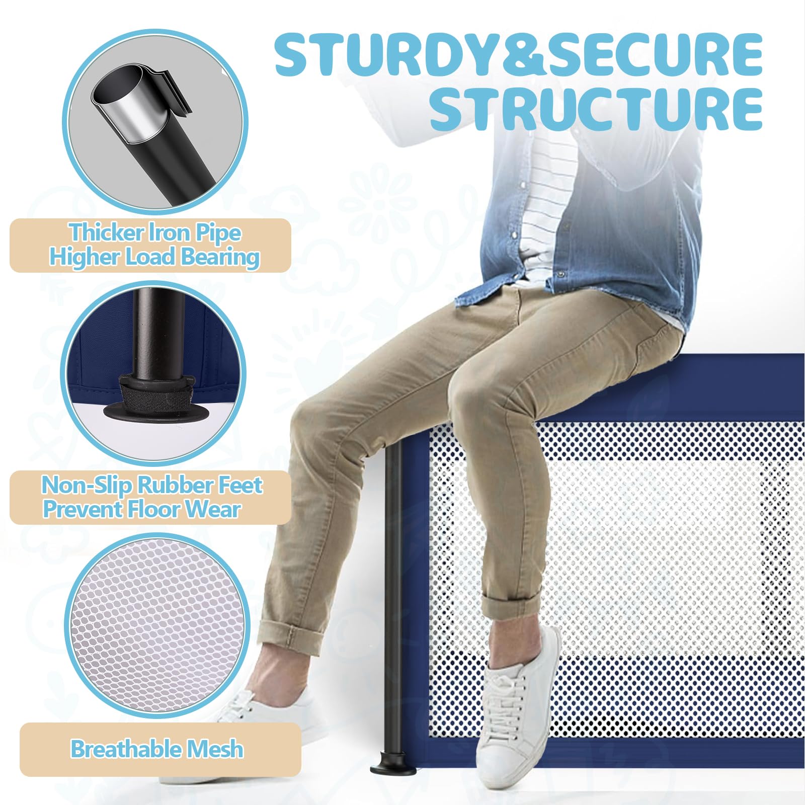 【360 DEGREE FULL VIEW】The baby playpen gate is designed with an external zip to prevent your baby from pulling it open and climbing out. Designed with ventilated and breathable mesh wall to avoid baby suffocation, it also provides a good view for you and your baby to interact with your baby at any time, giving your baby enough security.