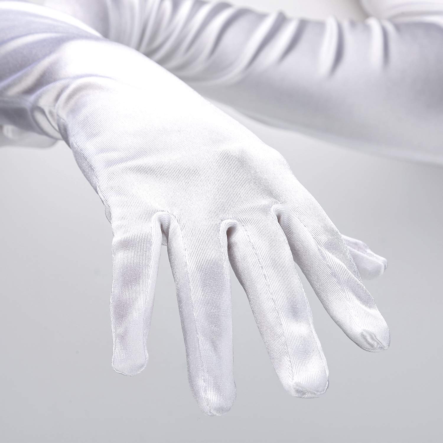 Premium Quality:White gloves are made of exquisite satin.Durable and Comfortable.Decent Stitching and Shiny outlook.