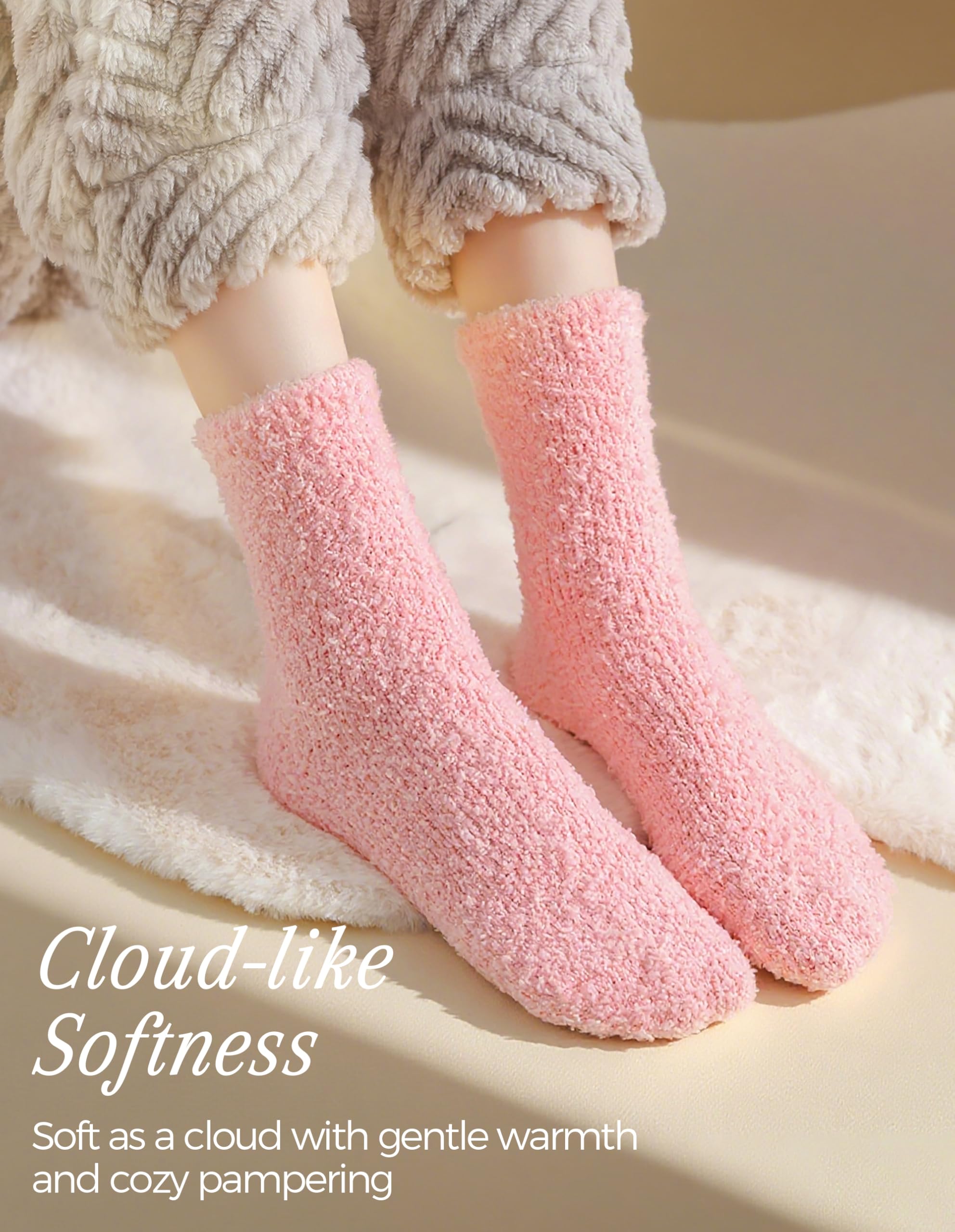 Cloud-like Softness and Warmth: Indulge your feet with incredibly soft microfiber fuzzy socks that feel like stepping on a cloud, for exceptional warmth and coziness