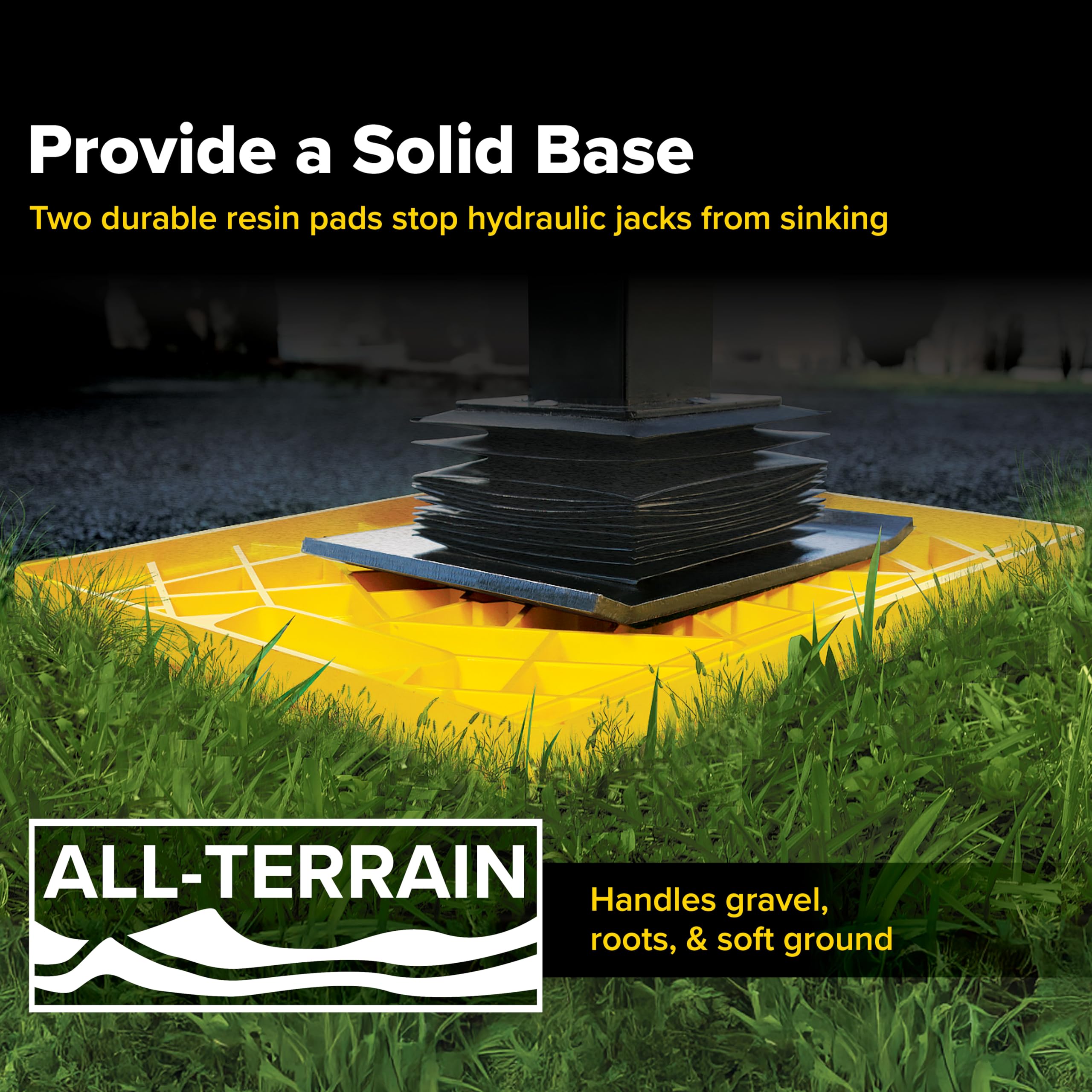 Large, Solid Base for Trailer Jacks: These camper accessories deliver a stable, level foundation to prevent trailer stabilizer jacks from sinking into soft earth or uneven ground. They are ideal for uneven surfaces like gravel and tree roots.