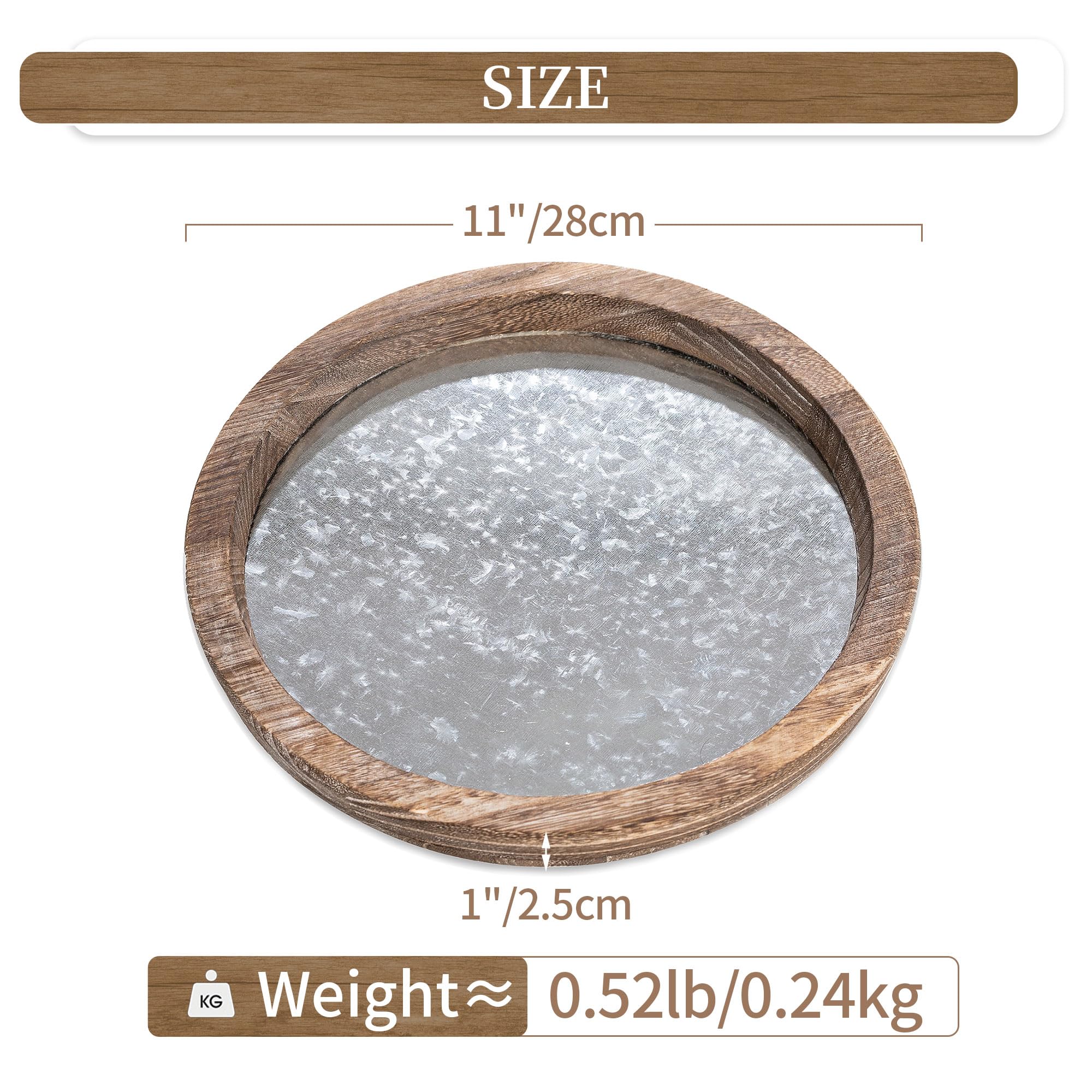 Material and Size: This vintage candle plate made of high quality paulownia wood and galvanized iron, lightweight and durable, it can reflect like a real mirror but without the worry of broken glass. The size of round tray is 11.02"L x 11.02"W x 0.98"H, perfect size to put on home table hold your favorite candles or other small items keep your countertop organized.