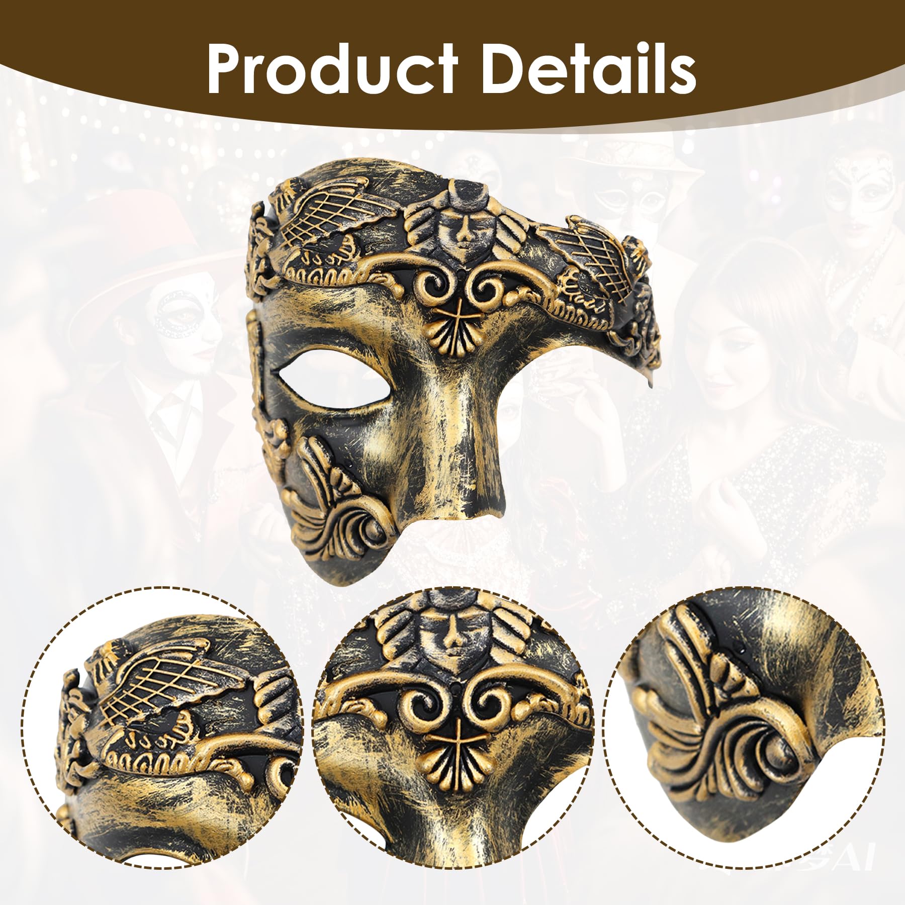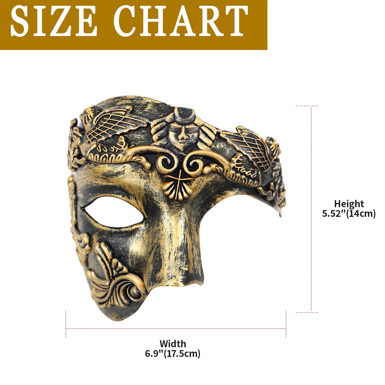 【Party Highlights】This ancient roman greek mythology mask transports you back to the Middle Ages. It fits most face shapes and is suitable for any formal or casual occasion. Perfect for masquerade balls, Halloween, carnivals, and themed events. Roman-inspired mask design adds a touch of mystery and sophistication to any outfit, making it a must-have for cosplay and holiday celebrations.
