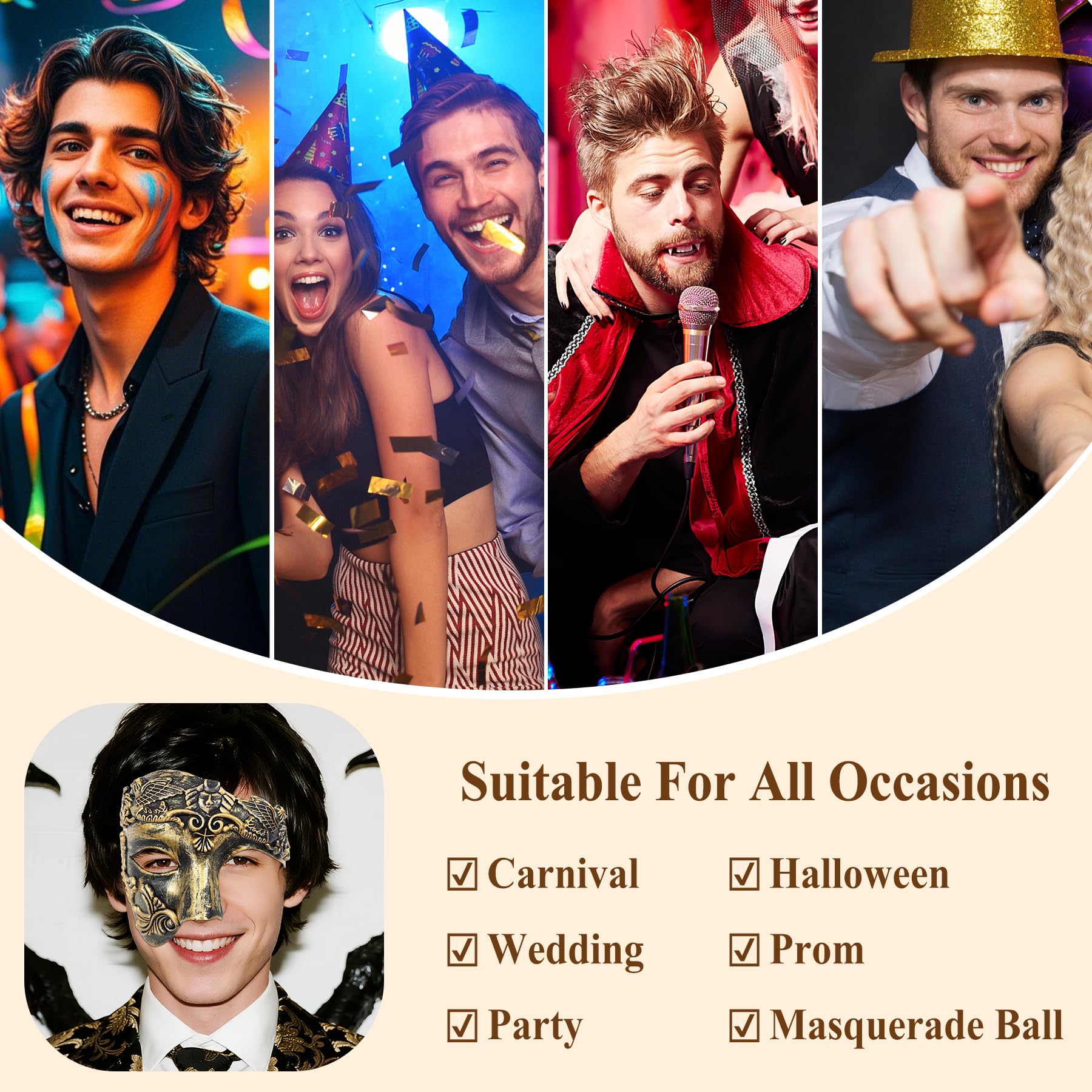【Party Must Accessory】Masquerade mask for men has a retro look and excellent workmanship. Whether for yourself or a loved one, friend or family member, this is the perfect gift. Can be worn at Halloween/Christmas Carnivals, Easter, Masquerades, Mardi Gras, Party Dances, Costume Cosplay Parties, Fashion Shows, Weddings, Birthday Parties, Theater Productions, Stage Shows, Masked Events, Nightclubs and more.