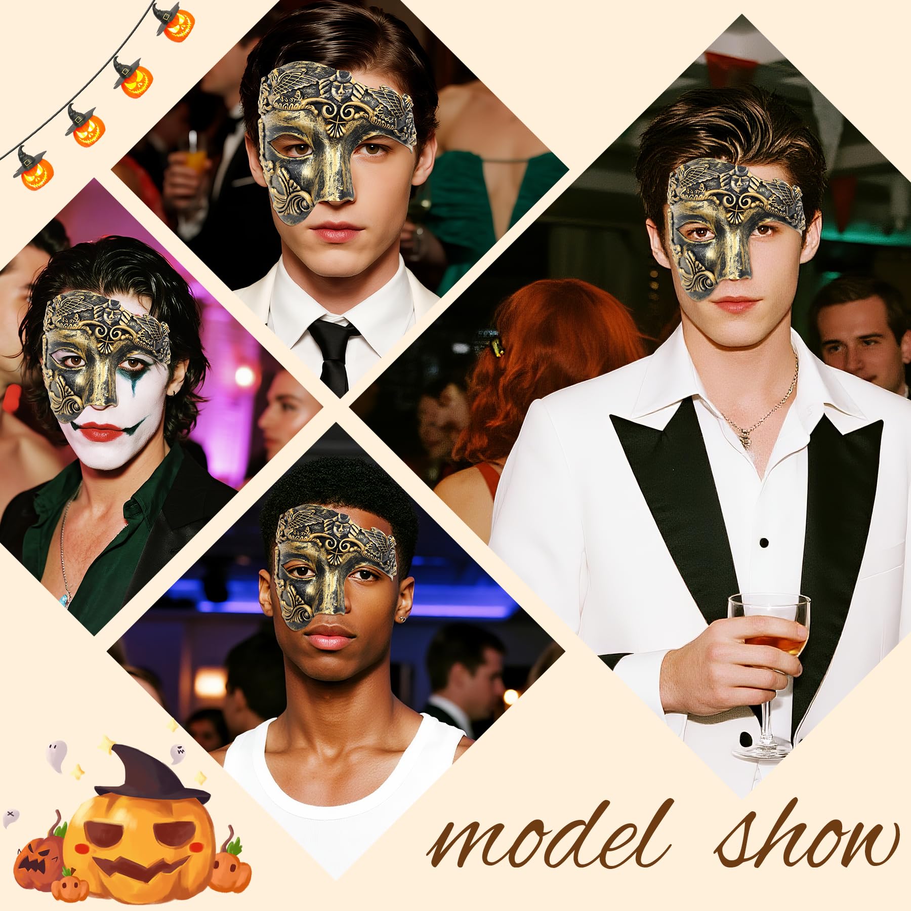 【Multiple Colors Available】There are 4 colors to choose from; Each men's masquerade mask is decorated with intricate pattern design details, making it more elegant. ONE SIZE FITS ALL. Masquerade masks with ribbons can be adjusted to suit your needs. You'll feel so comfortable that you won't even notice you're wearing them.