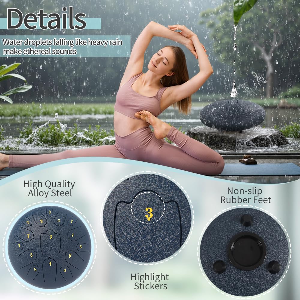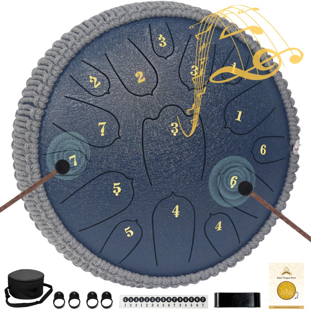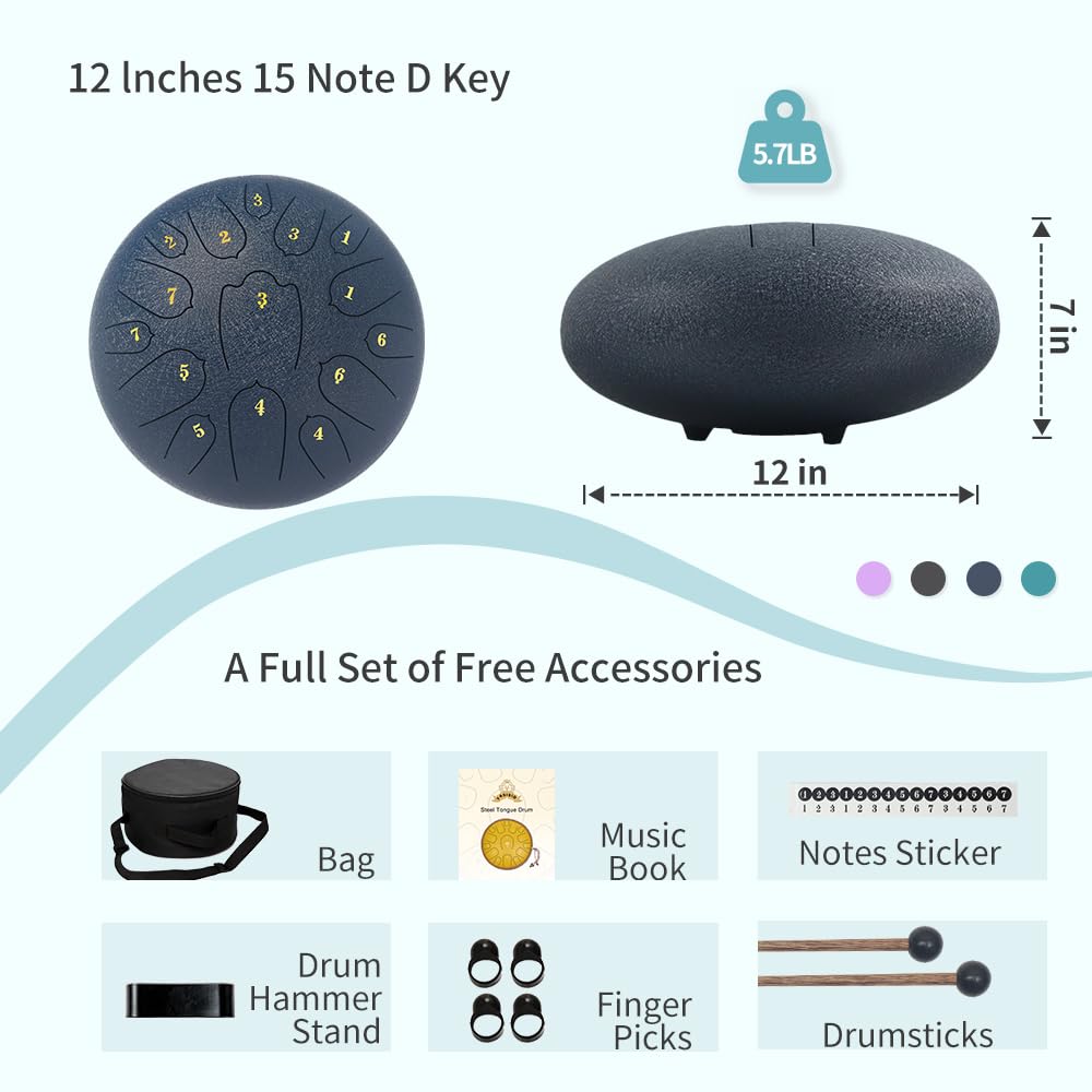 ♫【Package Included】12 inches steel tongue drum * 1, drumstick * 2, drumstick bag * 1, 2 set of notes sticker, drumstick bracket * 1, music book*1, finger sleeves*4, soft bag with strap * 1, Please feel free to reach us by message to contact our awesome support team.