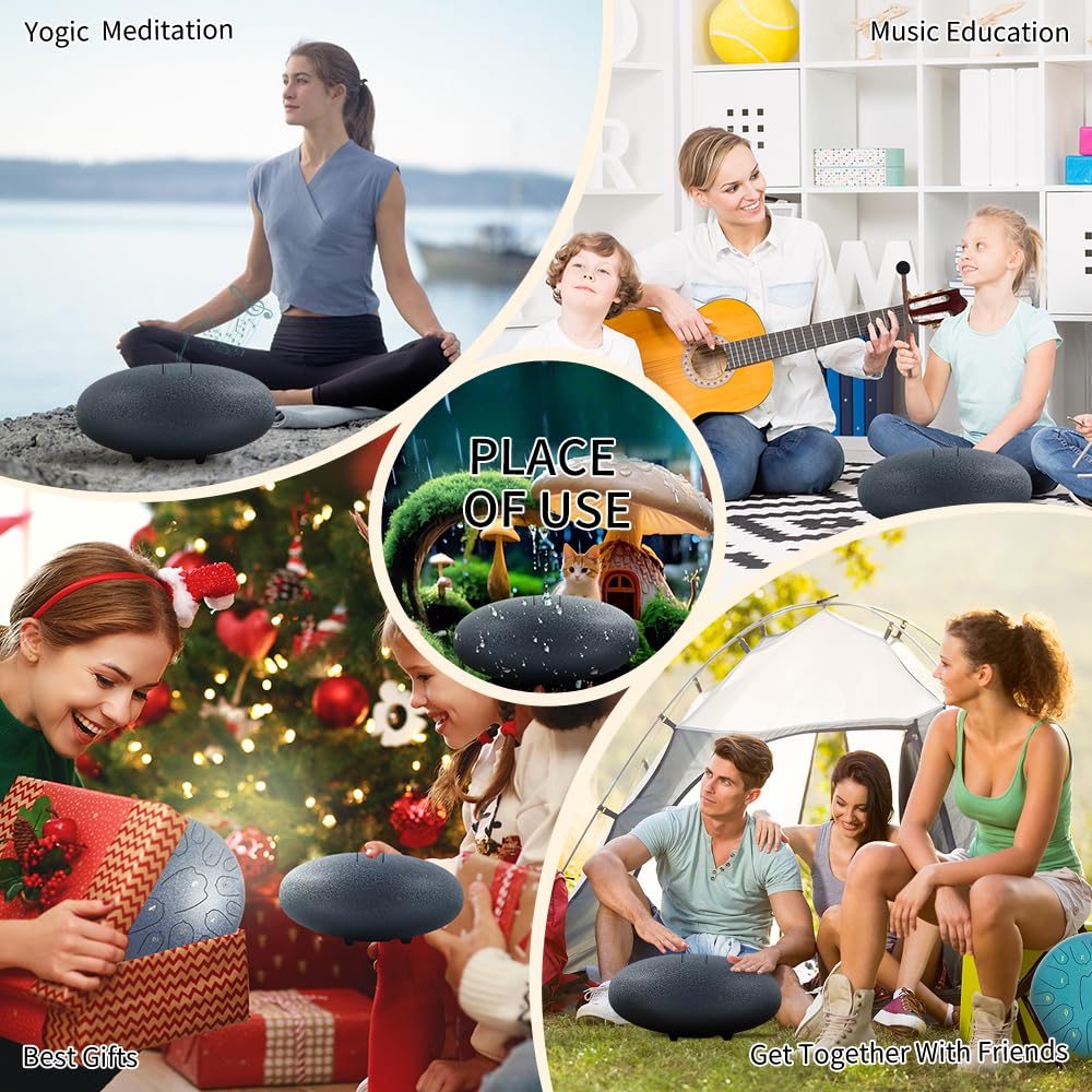 ♫【Applicable Scene】The hand pan drum can be used for yoga meditation, prenatal education, music education and music therapy, etc. The sound is ethereal, and the beautiful sound echoes in the air, which is longer than the echo of other musical instruments, allowing you to have a kind of relaxation and pleasure from the heart.