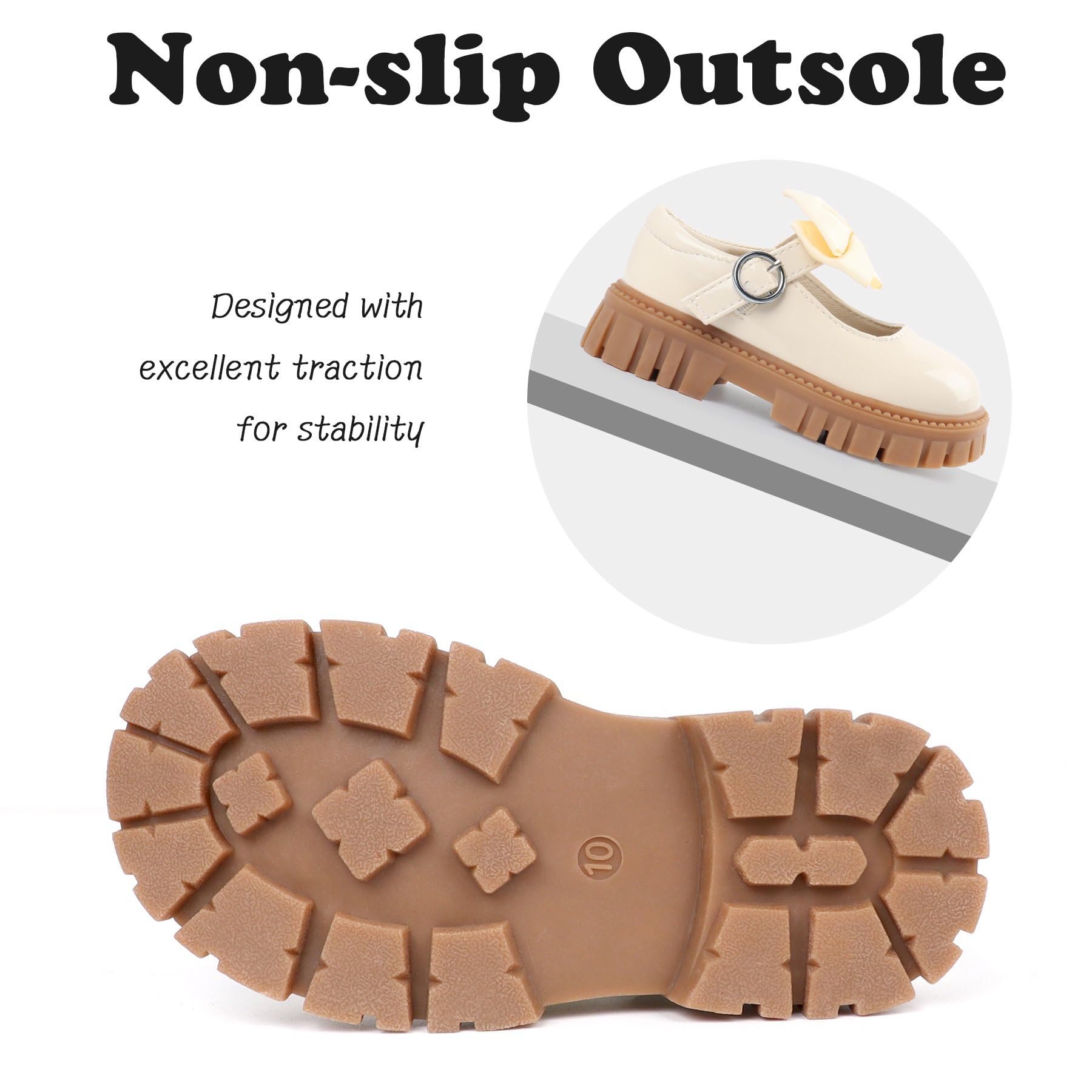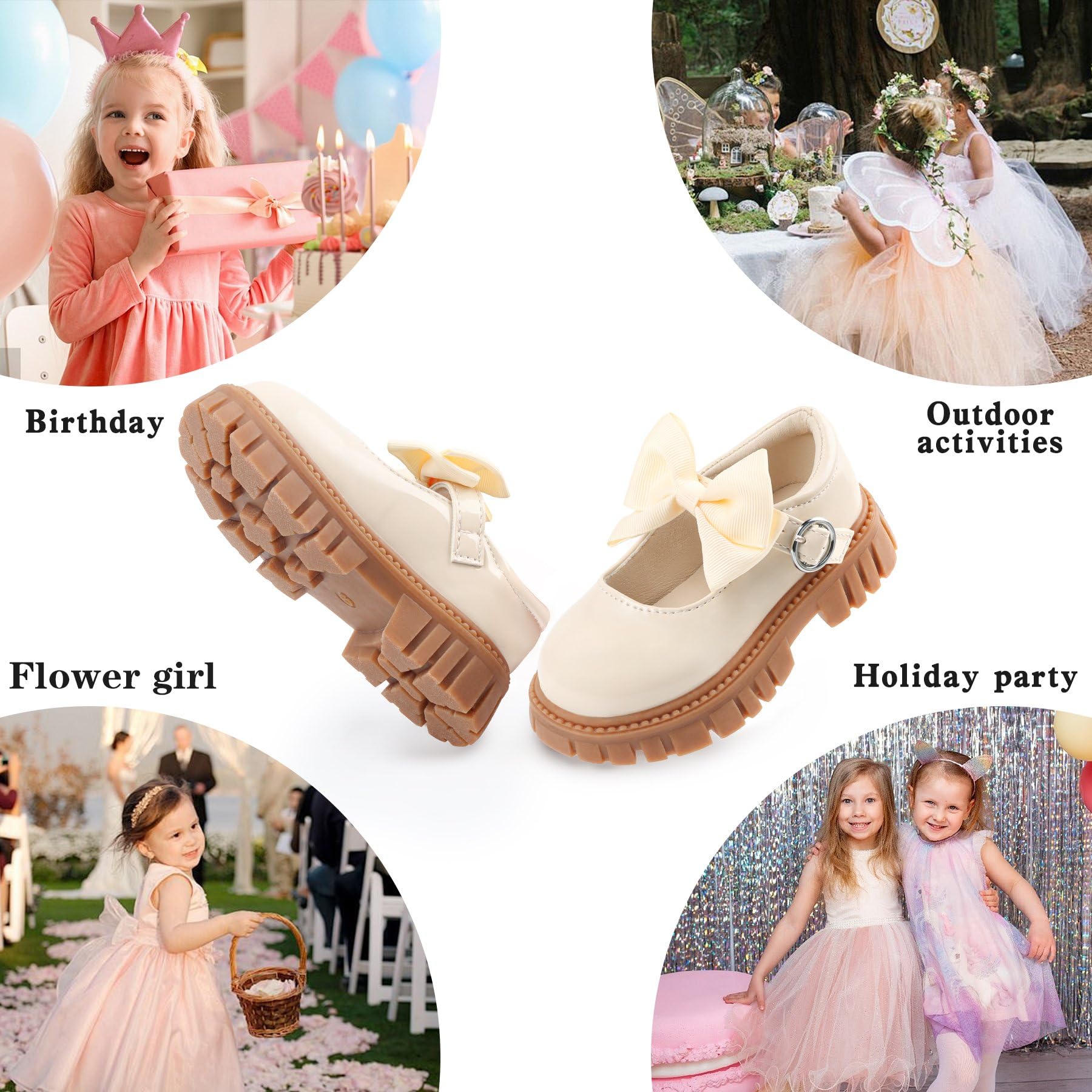 Round Toe Design:Carefully carved round toe arc design not only gives toddler dress shoes for girls a classic beauty and meticulous craftsmanship will undoubtedly attract toddler girls attention