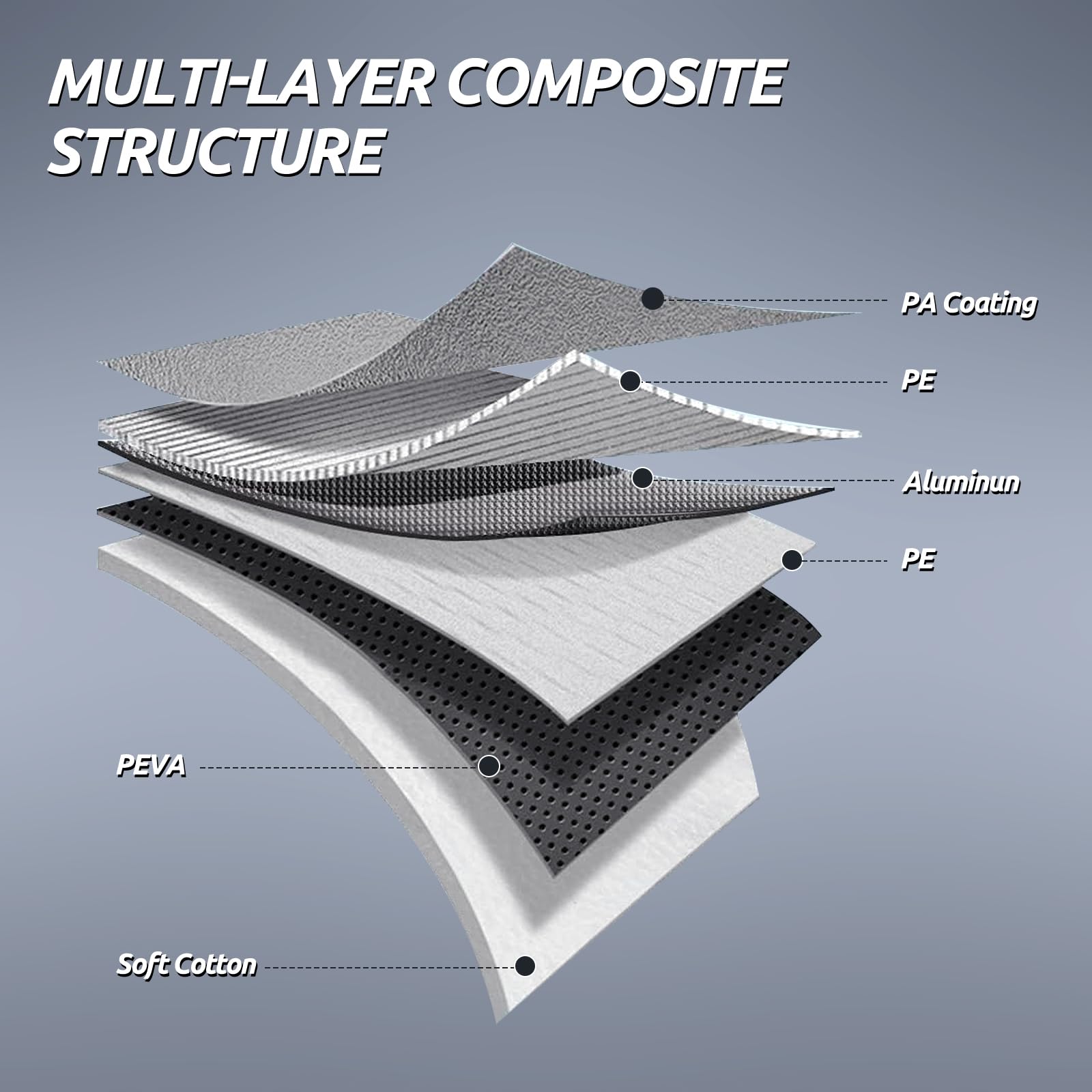 【High-Quality Material】Migavne car cover features a multi-layer composite material design. Layer 1 is PA coating, providing 100% waterproofing. Layers 2 consist of PE, enhancing breathability and maintaining suitable interior temperatures. Layer 3 is an aluminum membrane that reflects 99% of UV rays, reducing UV damage. Layers 4-5 are PEVA material, with strong tear resistance to maintain integrity in harsh weather. Layer 6 is soft cotton, effectively safeguarding the car's paint.