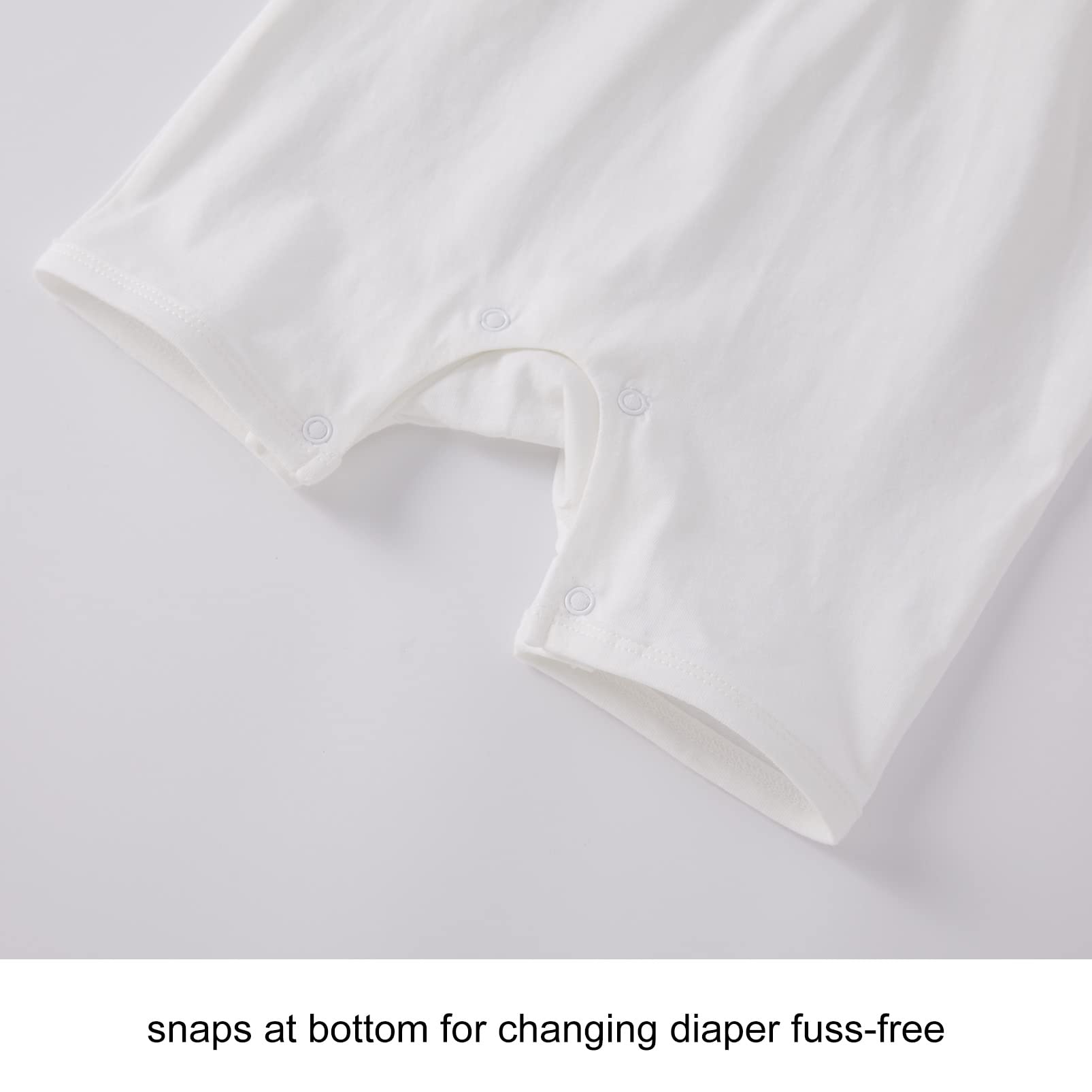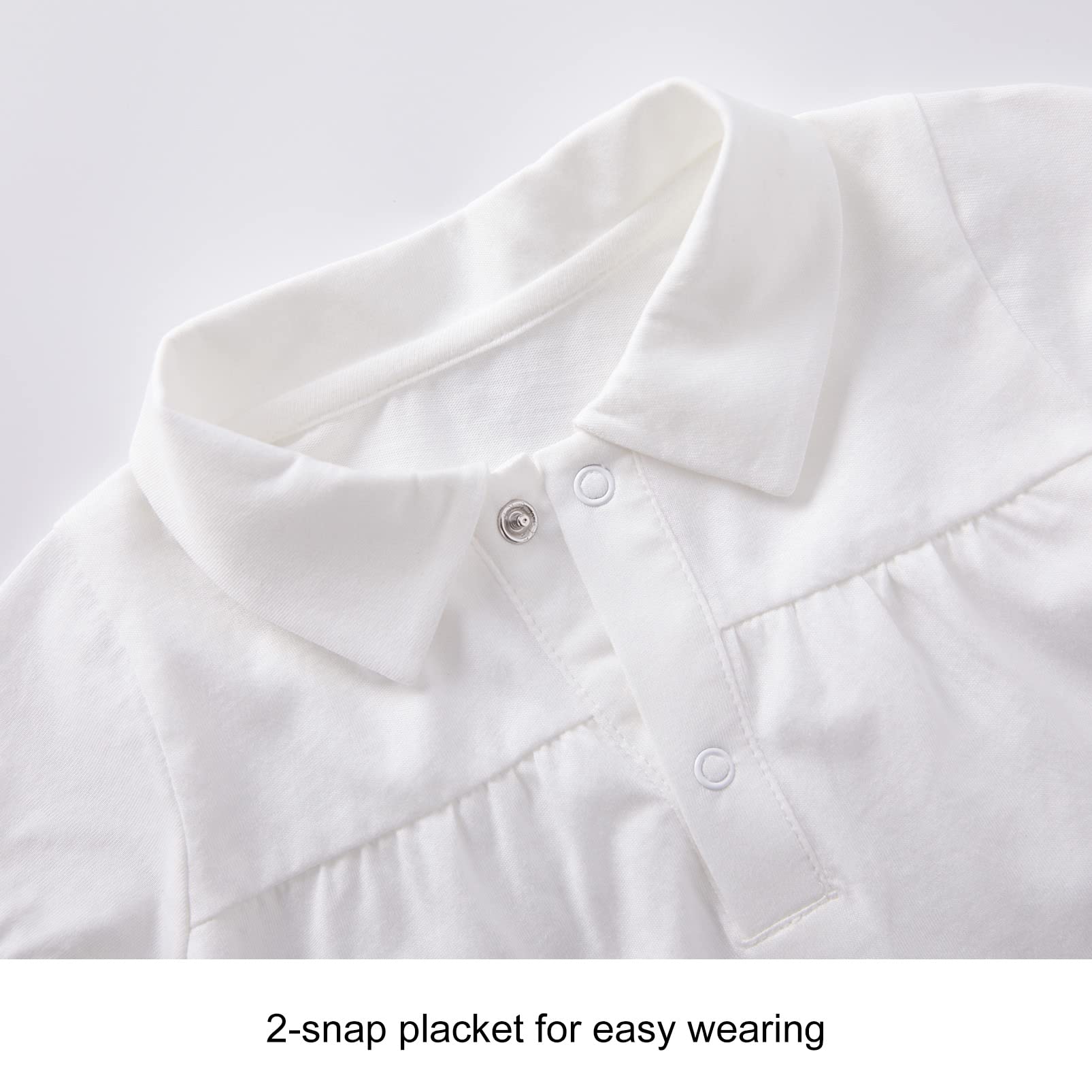 EASY TO WEAR - 2-snap placket at center front leaves plenty of room to pull over baby's head. Snap closure at bottom for changing diaper hassle-free