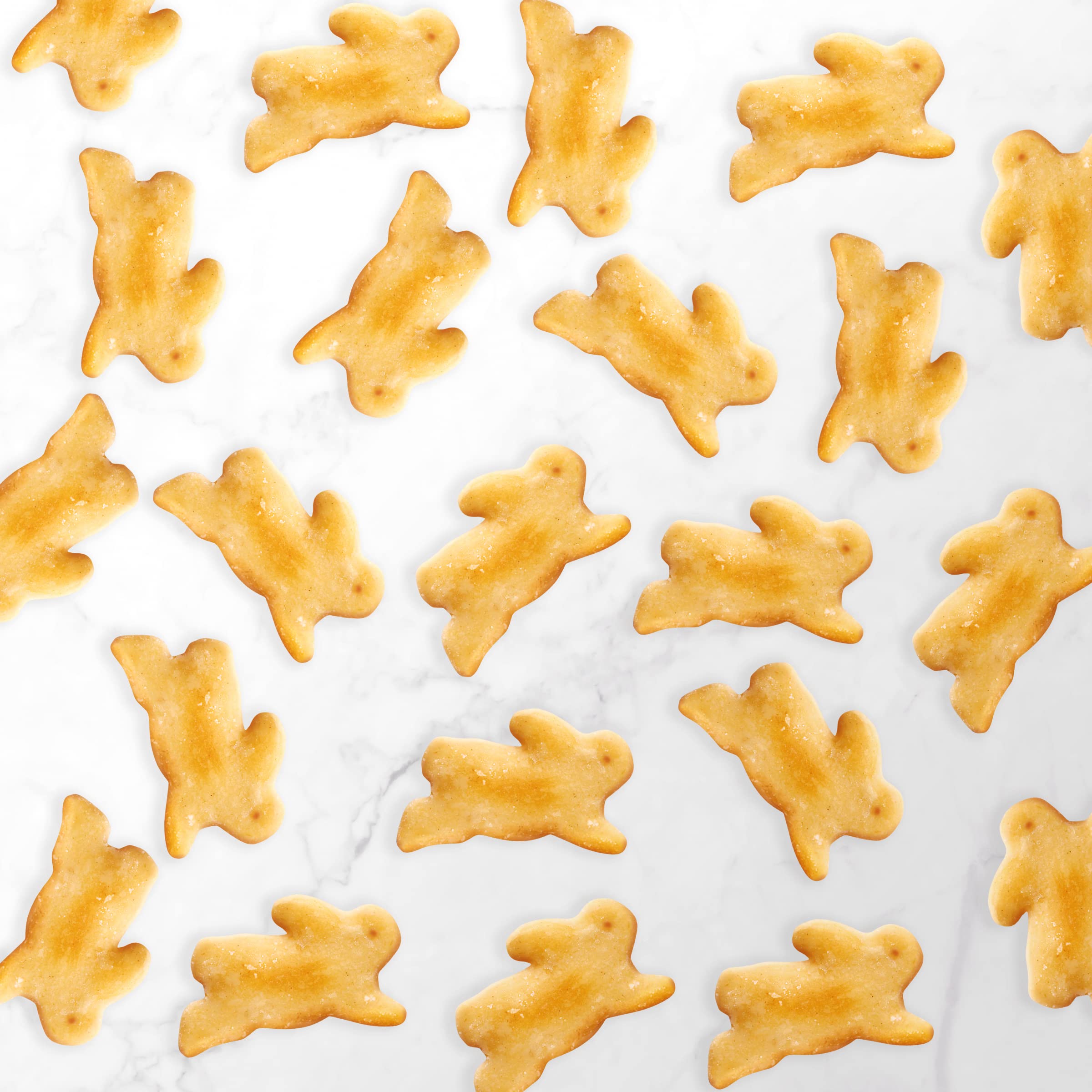 BAKED CRACKERS: Our baked bunny crackers are made with organic wheat and made with real cheese from cows not treated with rBST