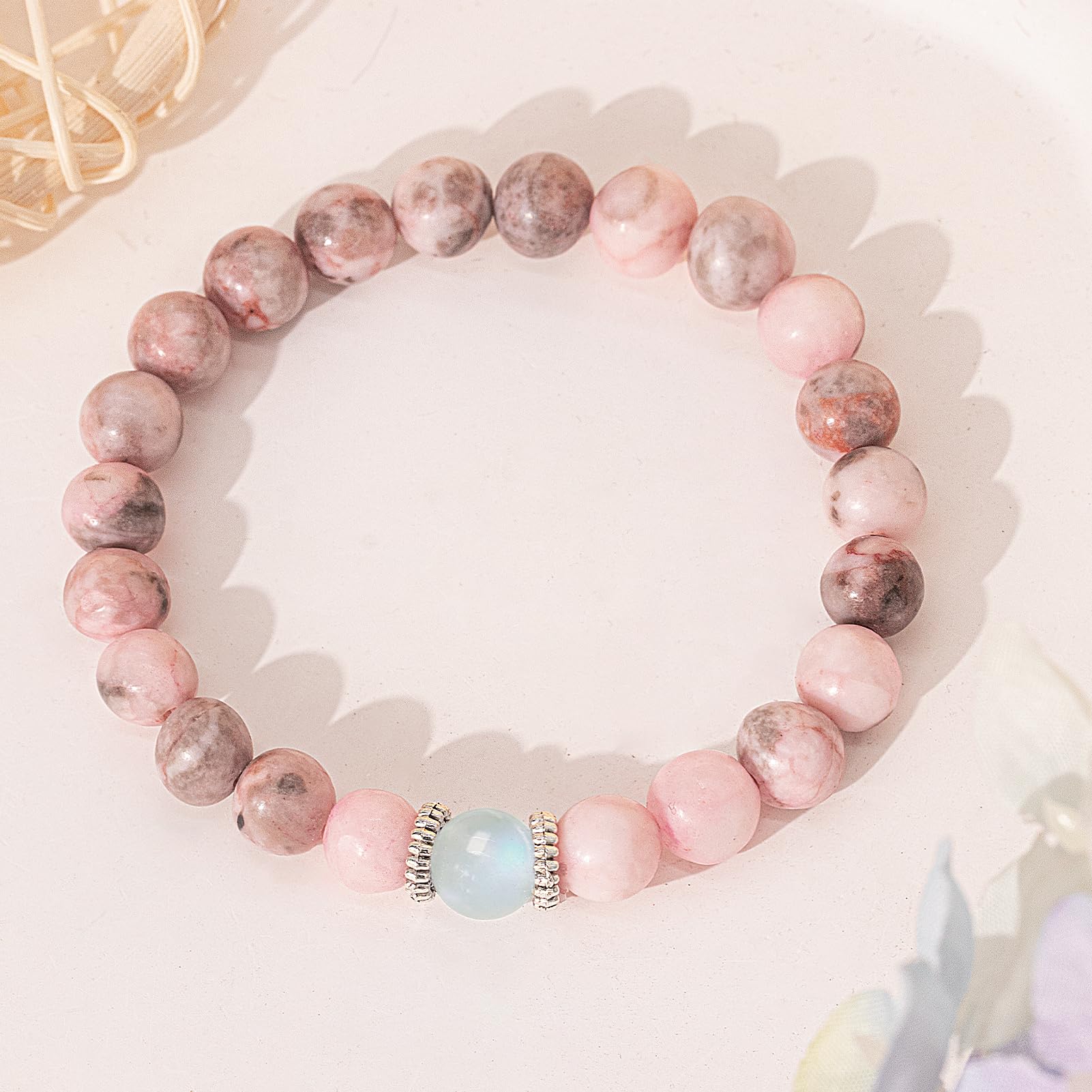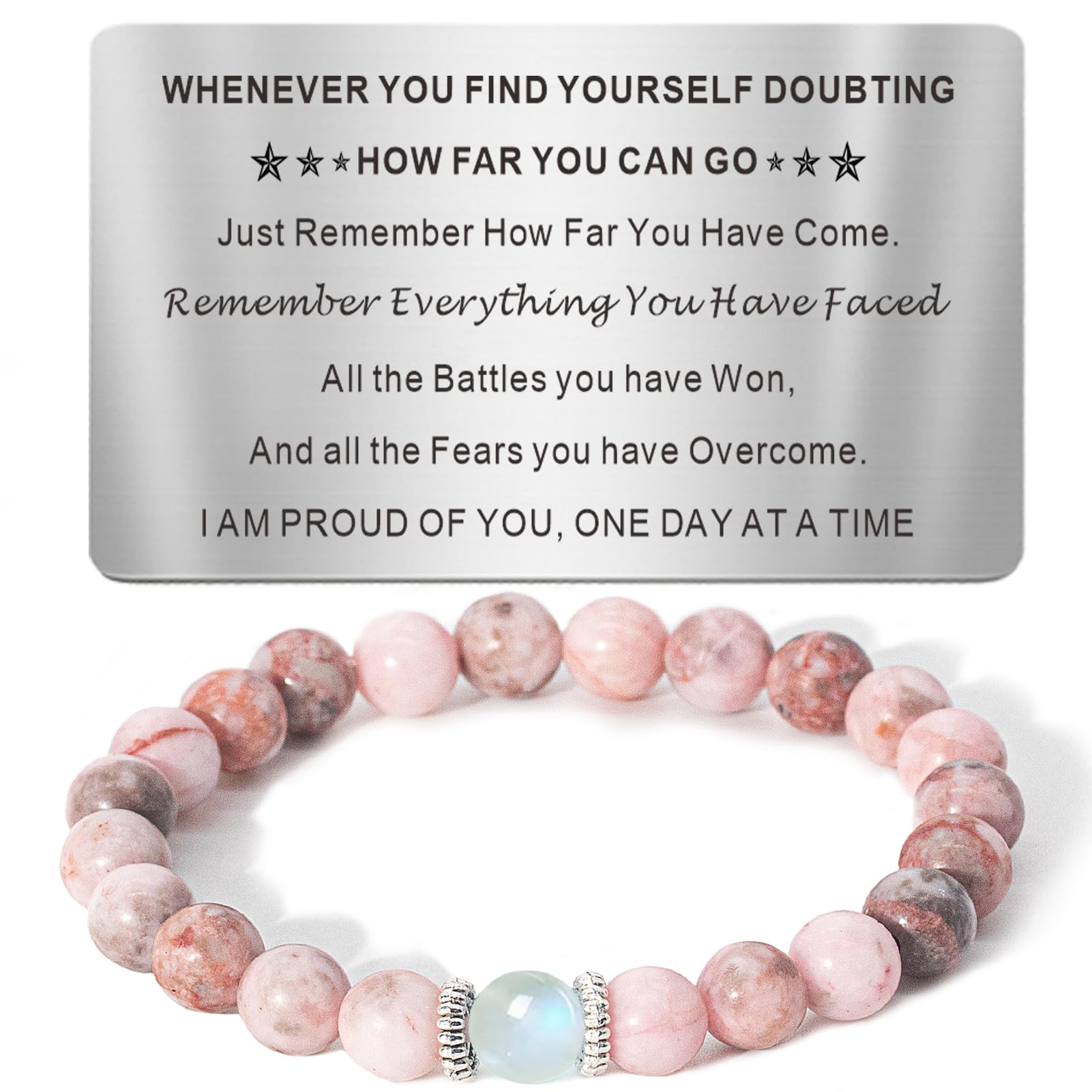 【Inspirational Gifts for Women】This Pink Zebra Jasper Moonstone bracelets with a inspirational wallet card and come with a nice gift box that can be given as a gift directly. make great gifts for women, Wearing this healing bracelets is excellent to help Purify Stress or Anxiety, Bring her Love and Protection, Guides make Right Decisions, attract Good Fortune, brings her Powerful Strength, Courage and Confidence. best Stocking Stuffers for women, Valentine's Day gifts for her