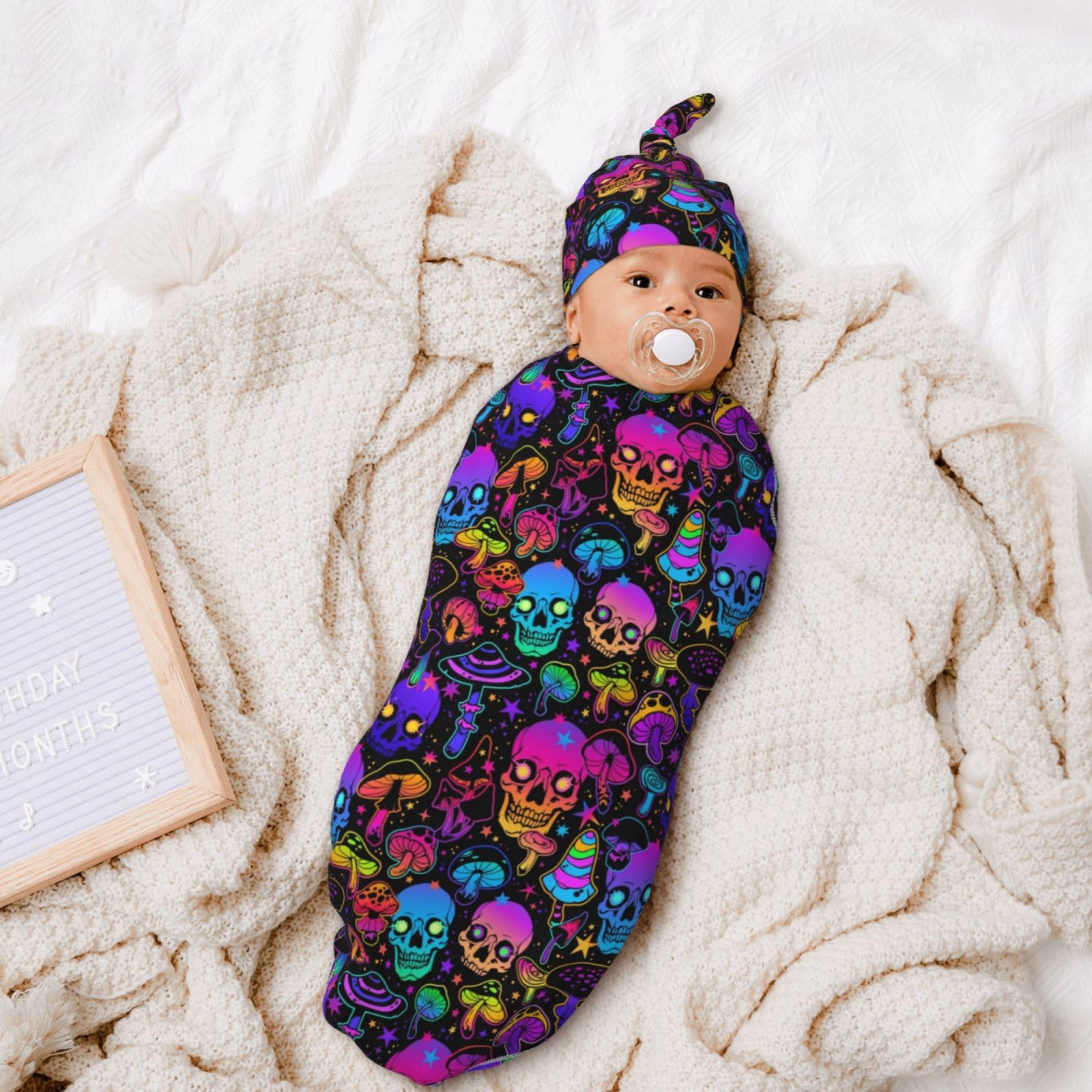 Size:1pcs Baby Swaddle Blanket Is 11.4*21 In, 1pcs Matching Hat Is 6.3*13 In. Suitable For Unisex Babies Aged 0-6 Months.