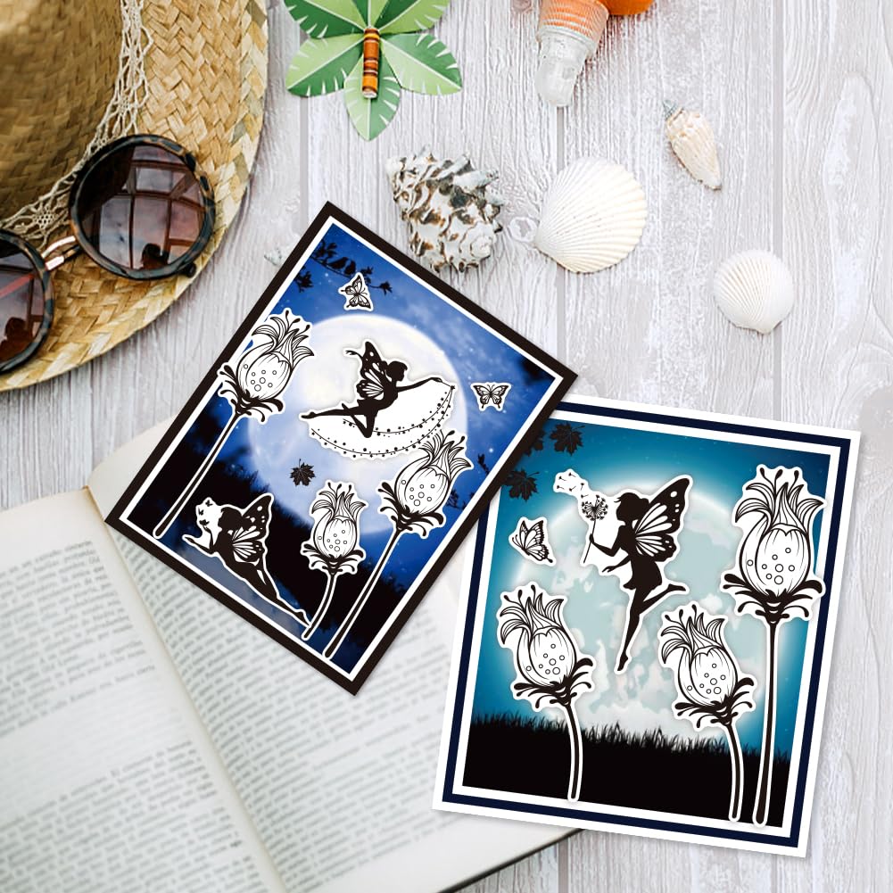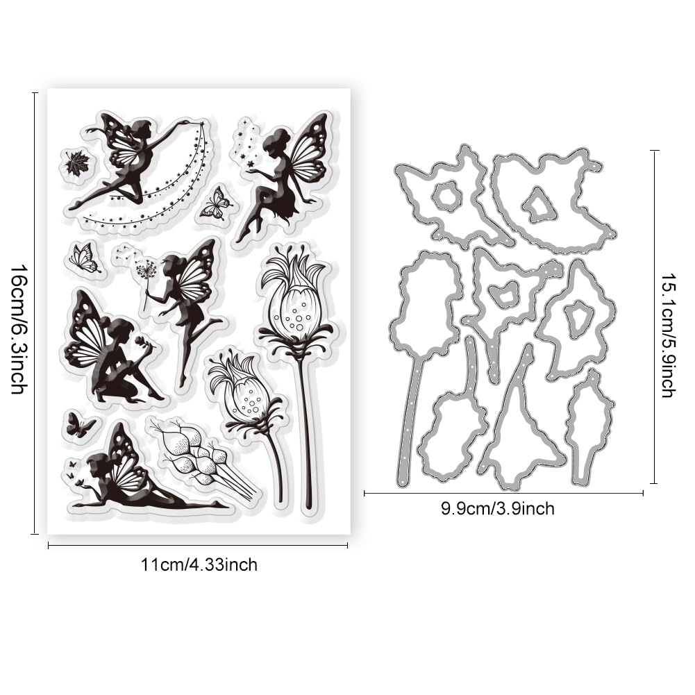 Flower Fairy Stamp and Cutting Die Set: This stamp and cutting die set includes a variety of different shapes, lively, cute and beautiful winged flower fairies, flowers and so on, as well as the matching framed templates. With the charming patterns and templates, you can create beautiful flower fairy greeting cards, paper crafts.
