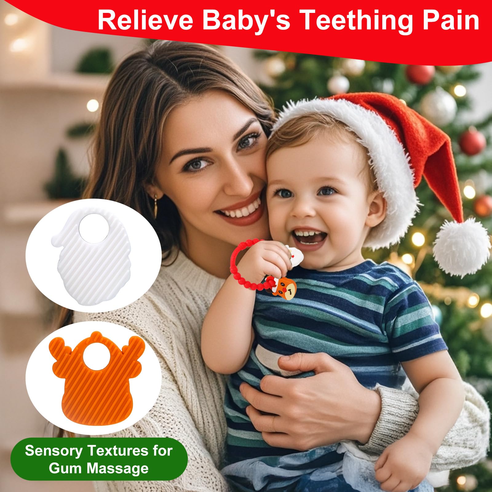 【Christmas Design】This teething ring adopts a unique Christmas theme with santa claus and reindeer decorations, which is a fun and festive accessory for your baby. The playful design not only adds a touch of festive atmosphere, but also makes it an ideal gift for Christmas celebrations