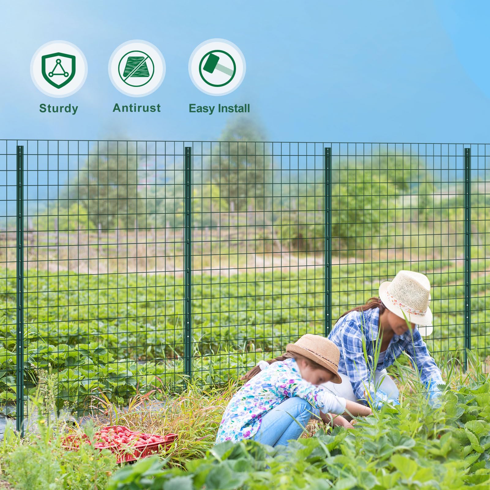 Multi-Purpose Use: These green wire fencing posts are used for fencing path, garden, yard or farming. Create a protective border for vegetable, flower beds or other plants. Build an fence barrier for dog, rabbit, poultry, or other critters. Use these metal T-post as the chicken wire fencing application, as the supports of a fruit bush, as a sign post or driveway mark.