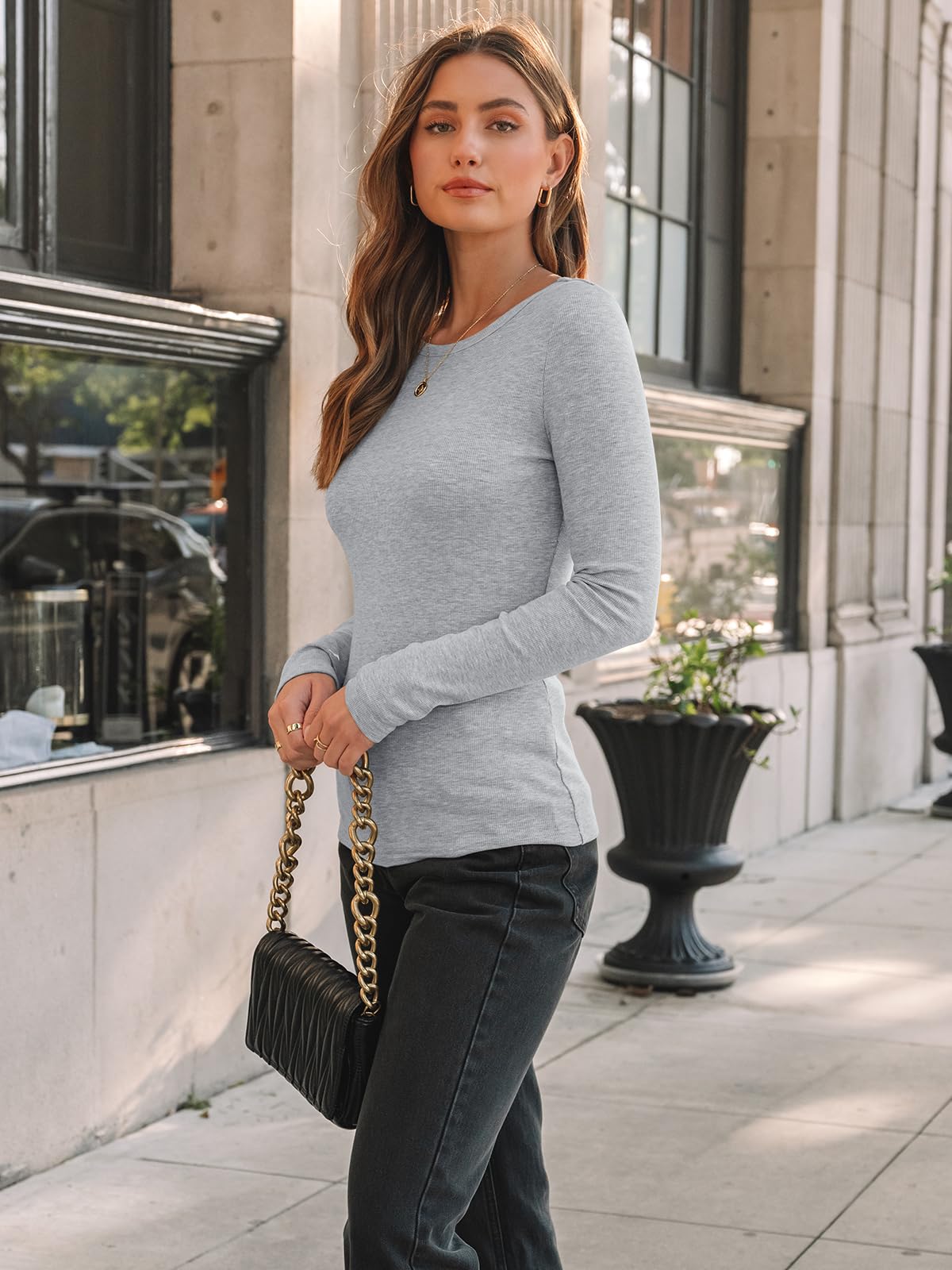 CHIC DESIGN: Basic tops for woman designed with long sleeves, fleece lined, solid color, crewneck, ribbed knit, cozy, stretch fitted, our casual tees will be your faves season after season