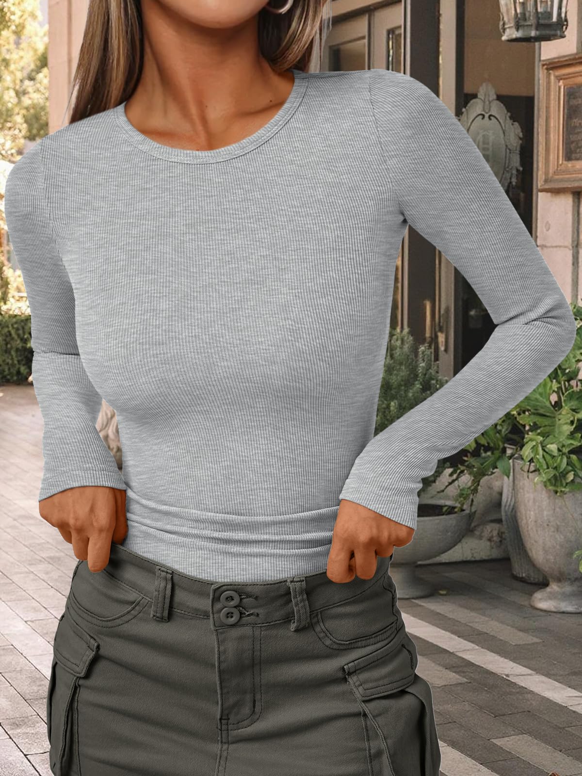 Long sleeve ribbed crewneck shirts for women, business casual dressy tops in fall & winter, suit for office,outdoor,home