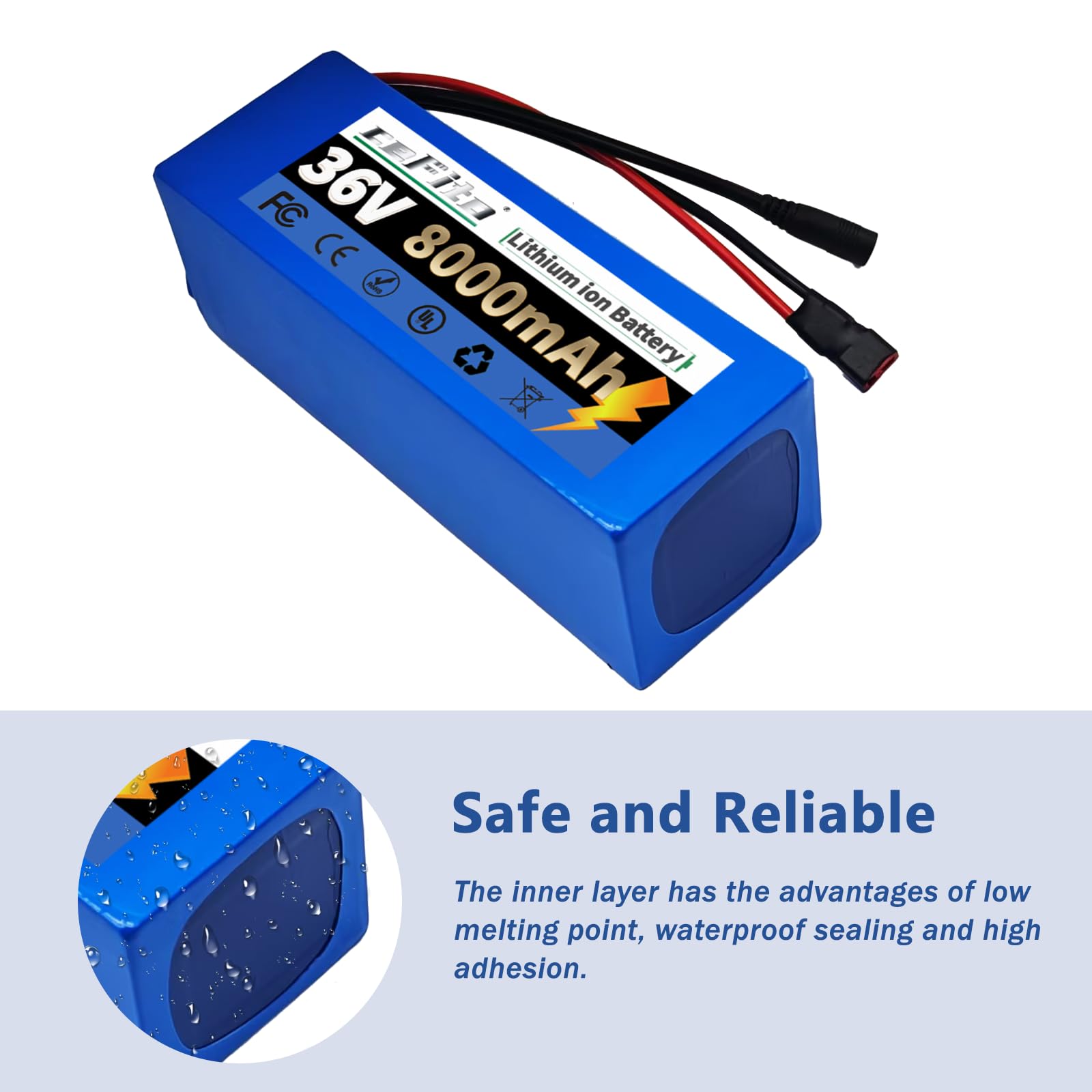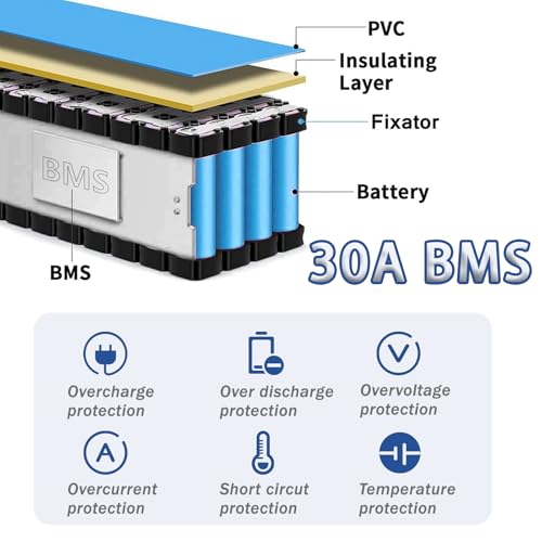 【30A BMS of 36V Battery】The 36v 8ah ebike battery is built-in 30A BMS ensures overcharge, over-discharge, overheating, and short circuit protection. High-quality Li-ion cells and precision BMS make every ride secure and reliable