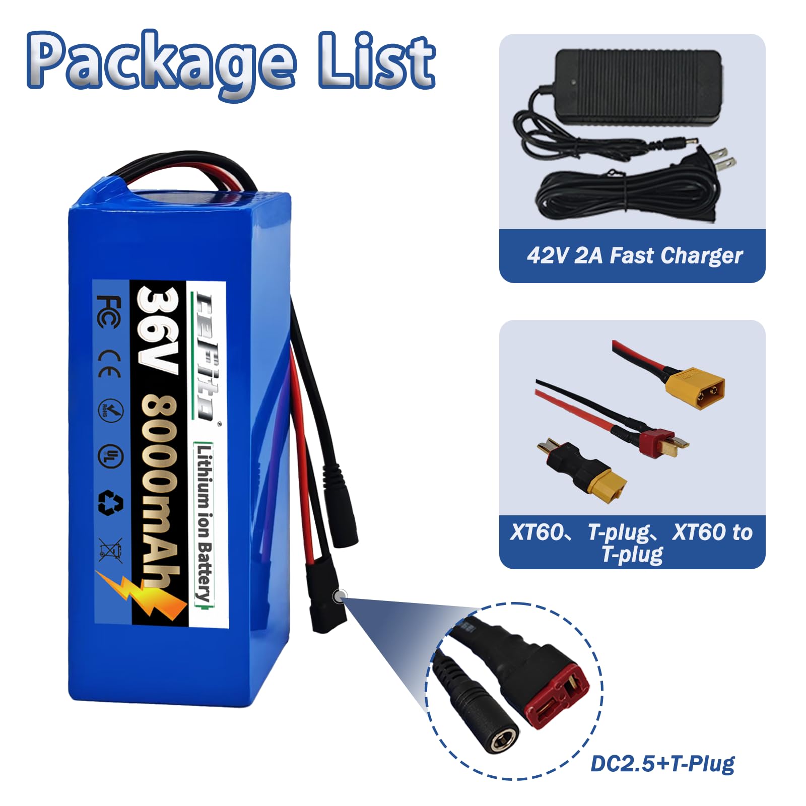 【Compatibility】The 36v ebike battery is compatible with electric bicycle, tricycle, electric motorcycle, scooter, solar panel and electric golf cart. Package includes XT-60、T-Plug、XT-60 to T-Plug adapter for easy connection. Your ultimate power solution