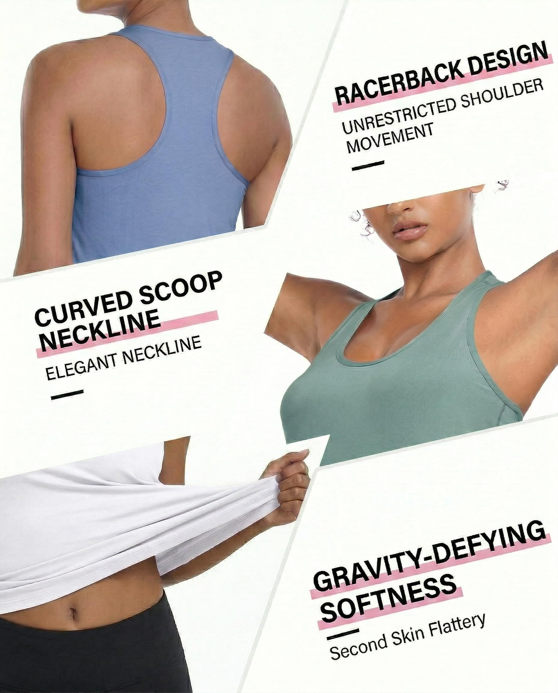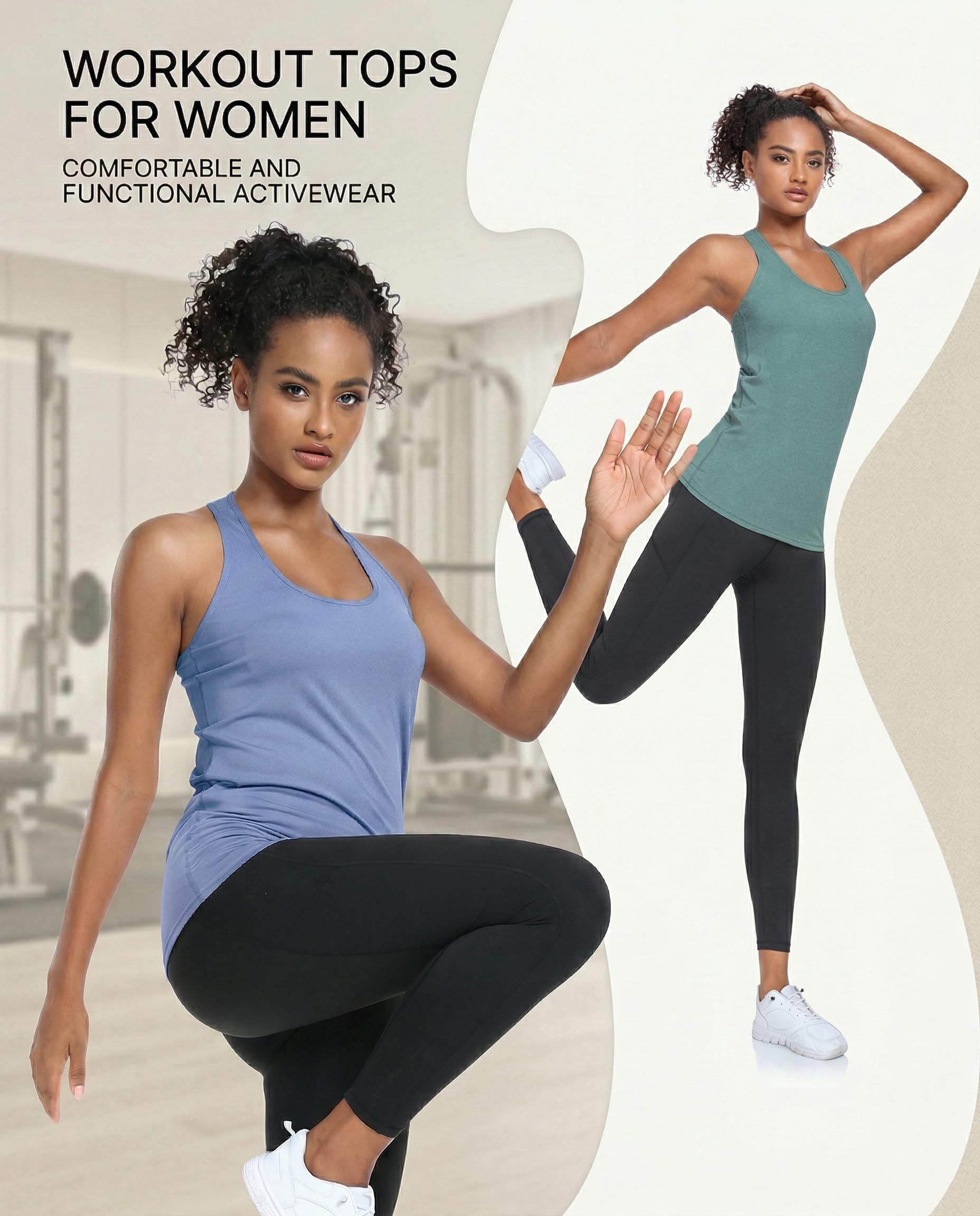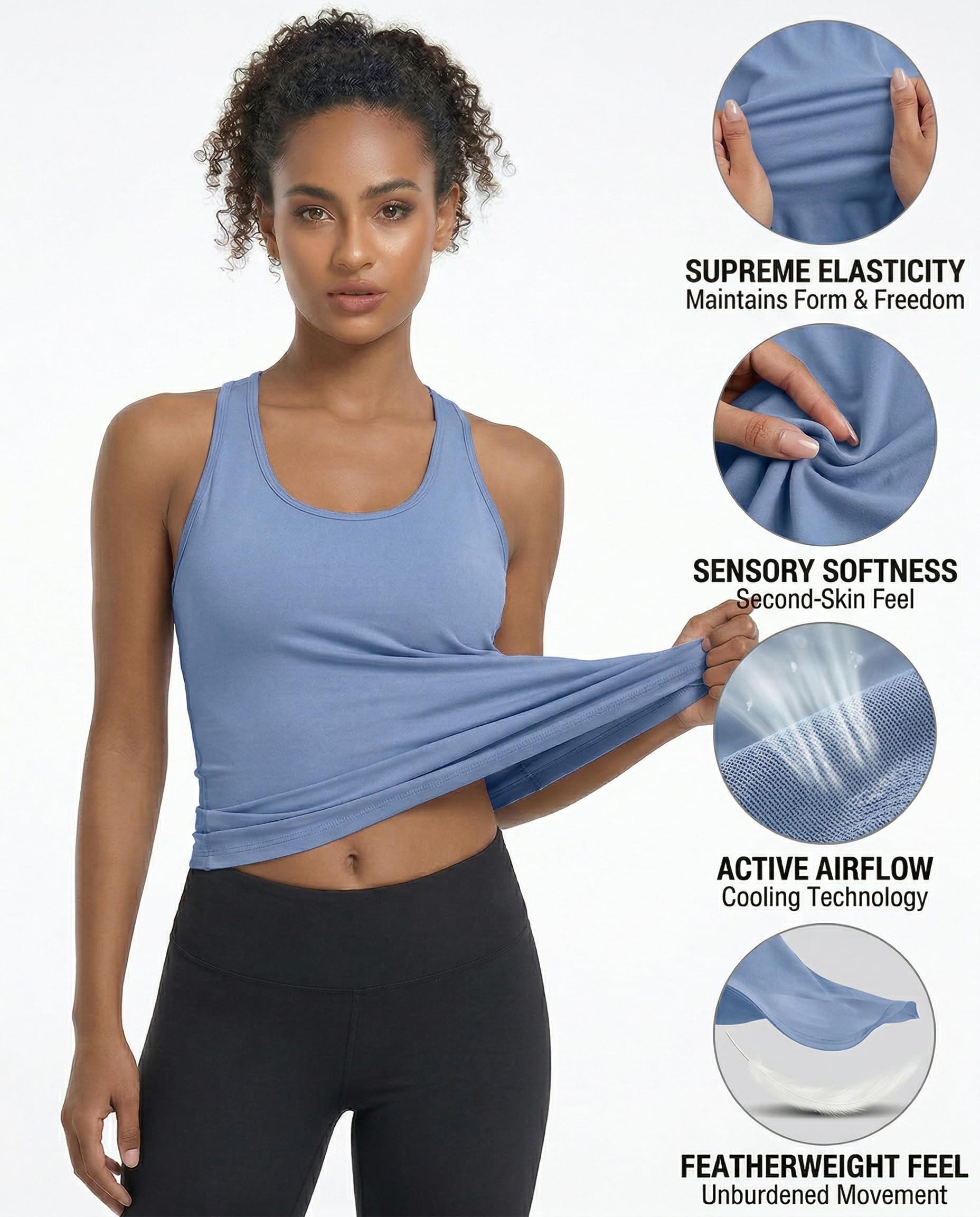 WORKOUT TOPS FOR WOMEN: These tank top for women (no bra-inserted) are made of 85% polyester and 15% spandex fabric which are breathable and lightweight , keeping you comfortable and dry while workout. Super soft and fitted sleeveless activewear.